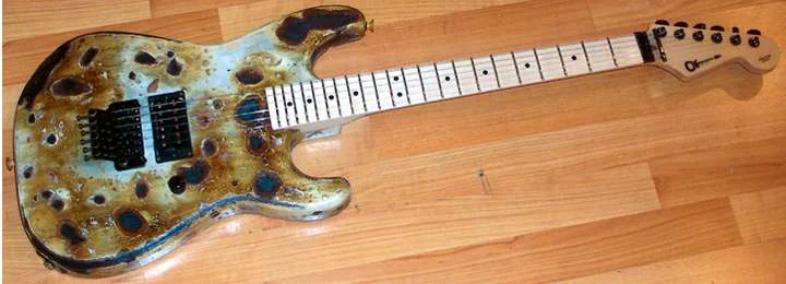 Oh scheisse, dass sieht ja noch übler aus, als die Charvels mit "To Hell And Back" Finish :screwy: