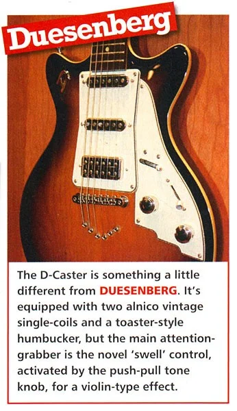 :screwy:D-Caster von Duesenberg, für mich das genialste Stück an Gitarrendesign, dass die letzten Jahre rausgekommen ist...demnächst dann wohl im Handel, ich habe schon einmal bei Duesenberg angefragt bzgl. des Datums etc. Liebe auf den ersten Blick - das Teil ist meine nächste Gitarre, definitiv!