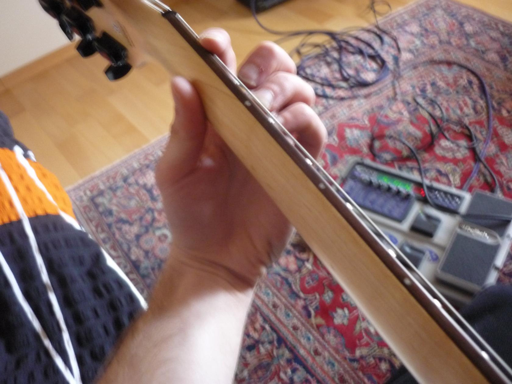 Mir ist seit kurzem, vor allem beim Spielen im Sitzen, aufgefallen, dass meine linke Hand da ziemlich "abgeknickt" ist, wenn ich einen Powerchord greife.