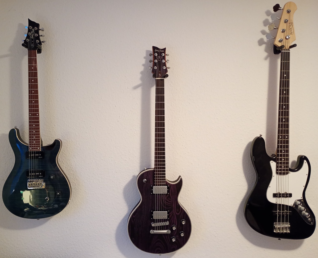 Ansonsten? Nein, wird nix geändert! Die PUs gefallen mir super, die Mechaniken und Straplocks auch, die ganze Elektrik arbeitet fehlerlos, bisher… Alles gut. Sehr gut sogar! Eigentlich Bombe. Kapitaler Fang! Petri Dank.