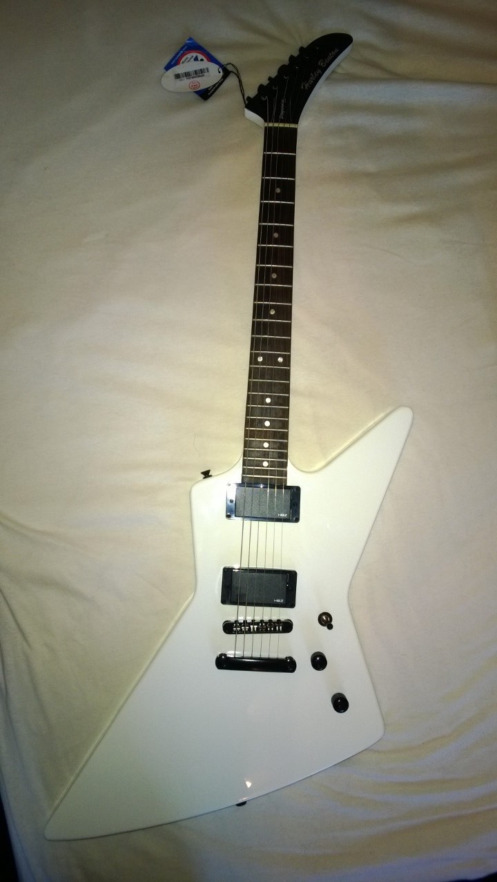 Habe meine ex84 jetzt auch eine woche. Ausser den lackschäden kann ich nichts bemängeln für den preis. Ich hatte noch ein emg zw set rumliegen dass ich gleich eingebaut habe. Die gitarre hat einen sehr mittigen sound, was mir gut gefällt. Die bespielbarkeit ist auch gut. Beim direktem vergleich mit meiner gibson explorer merkt man schon unterschiede, vor allem beim sound, die gibson klingt viel wuchtiger, dass merkt man schon beim spielen ohne amp. Ob das den preisunterschied rechtfertigt muss jeder für sich entscheiden ;)