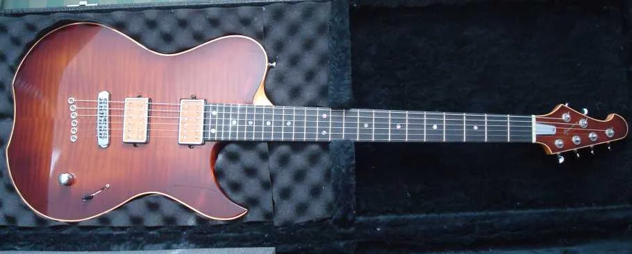Heute würde ich mit 22Bünden auskommen, eine HSS Pickup Kombi oder 2xEMG89 nehmen, den Halsübergang kann man anders gestalten, den Body chambern (nur wegen dem Gewicht; ich höre da keinen Unterschied), die Schaltung darf ein Ticken aufwendiger sein, die Form würde ich ändern, die Farbe gefällt mir nicht mehr, damlas war ich wirklich glücklich damit usw...