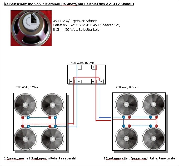 am Beispiel einer Marshall AVT412 (200 Watt, 8 Ohm) dargestellt.