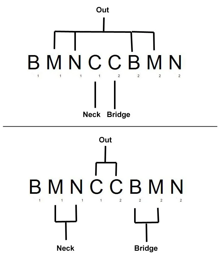 hhmm ich hab jetzt mal die Verkabelung von dem Fender-tipe 5-Way der in der Anleitung von EMG beschrieben is auf den Import übertragen, könnt ihr mal schaun ob des so stimmt? bzw ob man mit der schalung zwischen den PUs umschalten kann? oder sin dann teilweise nur einzelne Spulen aktiviert.........ich will halt einfach das in einer Stellung nur der Bridge geht in der mitte beide und in einer oberen der Neck............