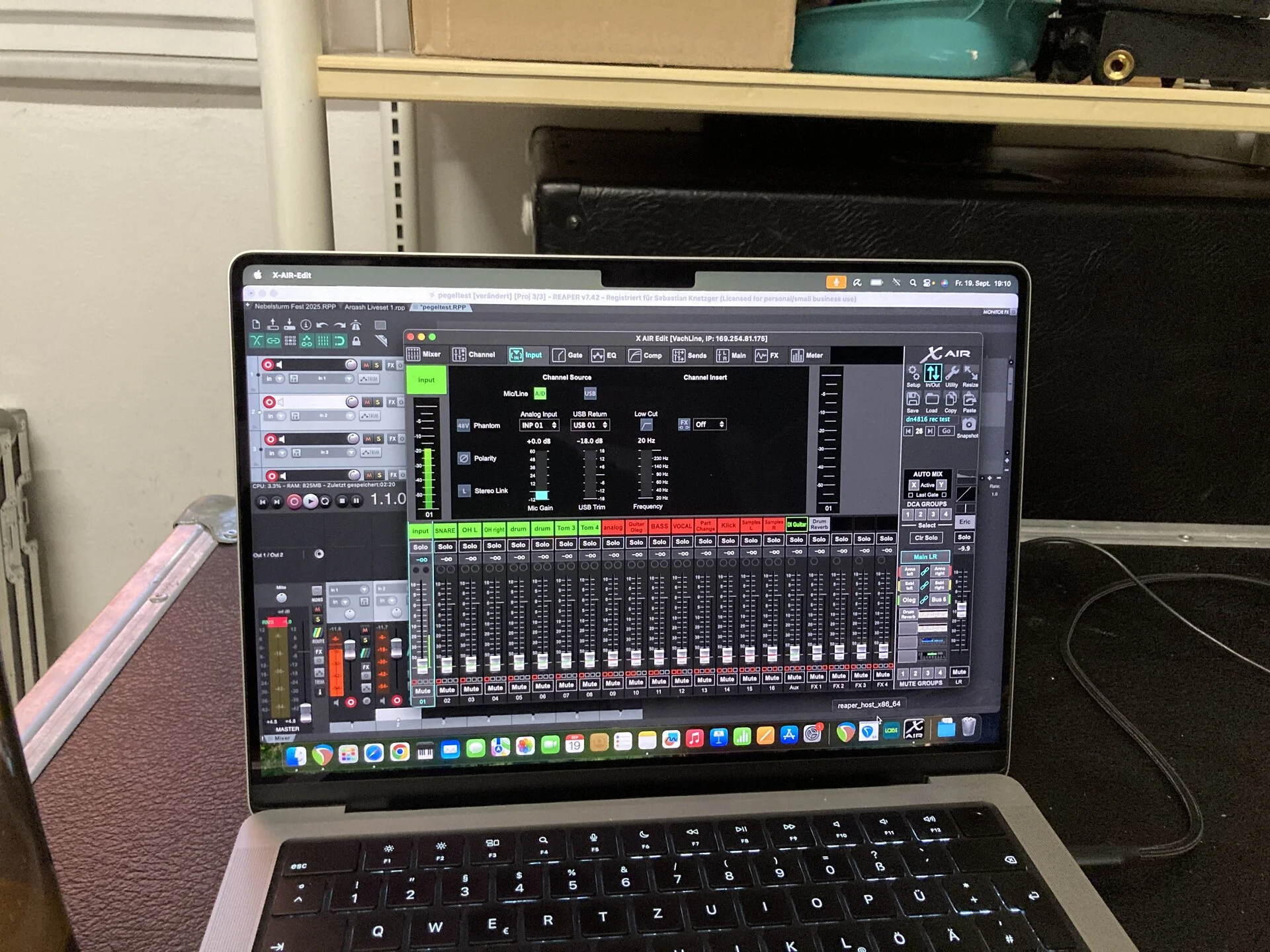 das IEM XR18 war eingestellt wie beim Letzten gig nach reduzierung der Gaineinstellungen, also so dass es dem FOH gepasst hatte.