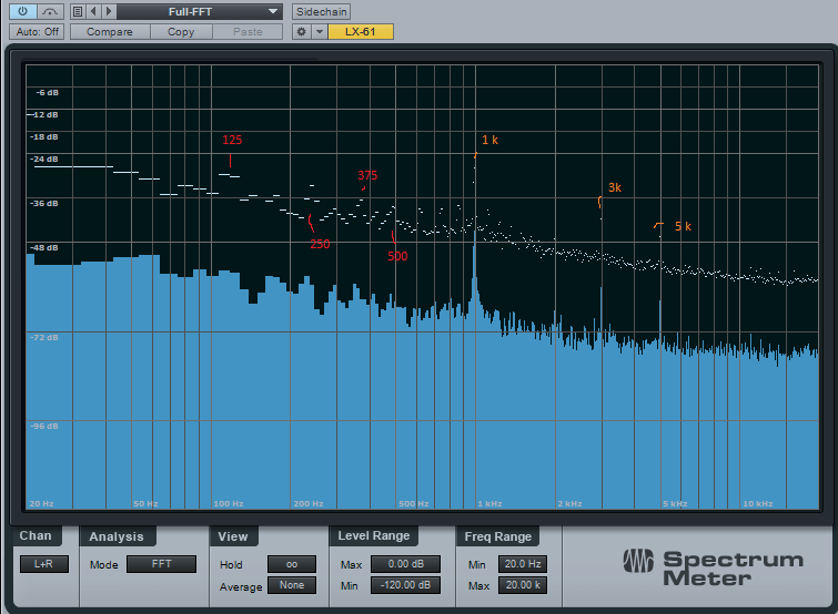 Damit haben wir diese Ebene vollständig erfasst. Die Mouse können wir vorläufig ausschließen, denn die Pollingrate ändert zwar das Spektrum, aber das 1 kHz Signal (mit Oberwellen) bleibt.