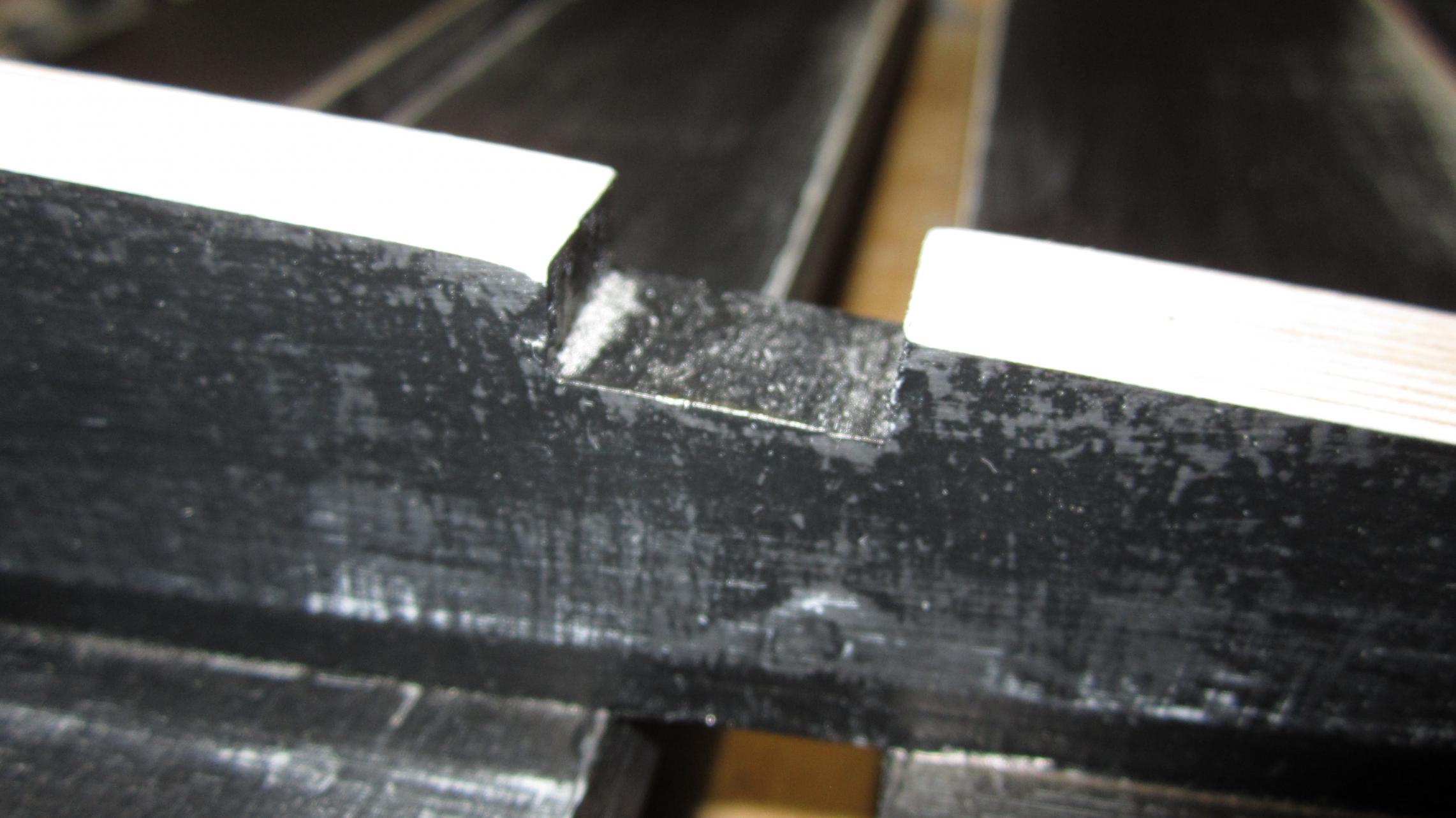 Wichtig ist nun, dass man aus dem Mittelträgerstück auf Höhe der Lücken Ausnehmungen ausfräst, damit man beim Verkabeln nicht "vor verschlossenen Türen" steht: