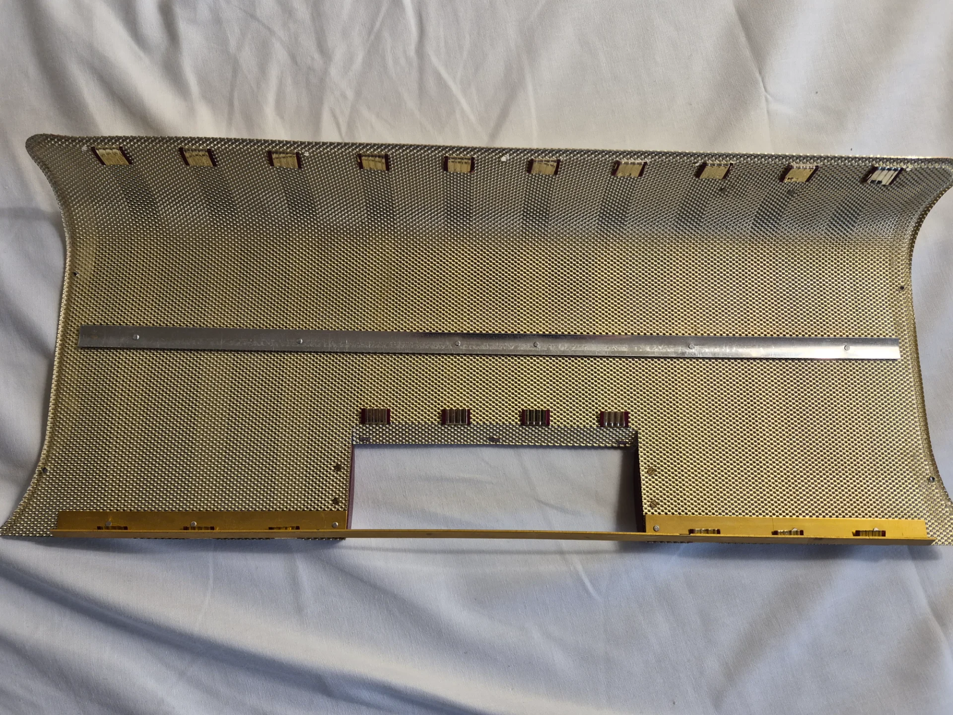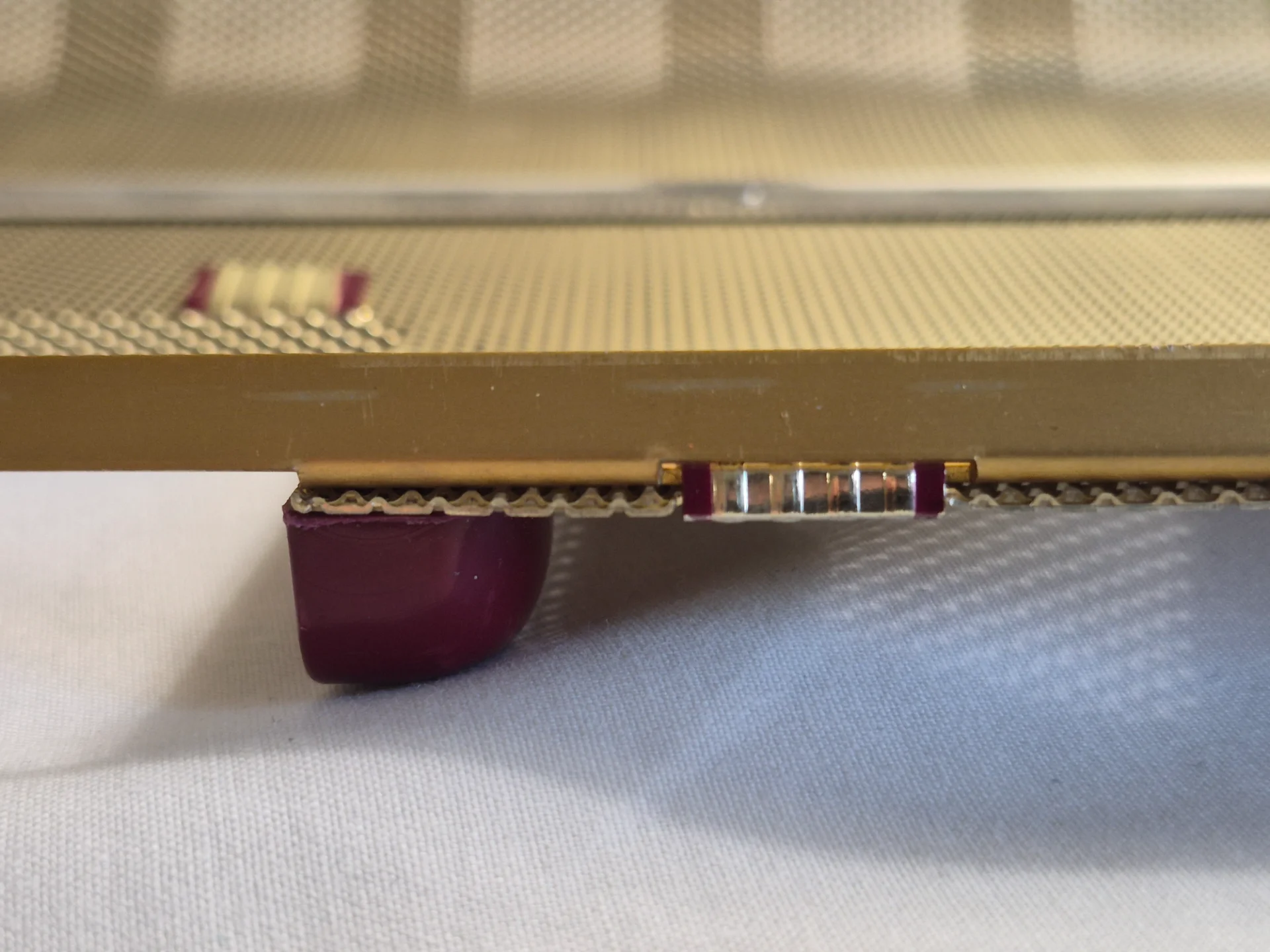 Also Verdeck abgeschraubt. An dem Profil, das unter die Register geschoben wird und quasi den Abschluss des Verdecks an den Tasten bildet, direkt man schon die Abdrücke der Tasten. Ich habe auch den Eindruck, dass dieses Profil etwas schief angebracht ist, es blockieren sich hauptsächlich die unteren (also die tiefen) Tasten.
