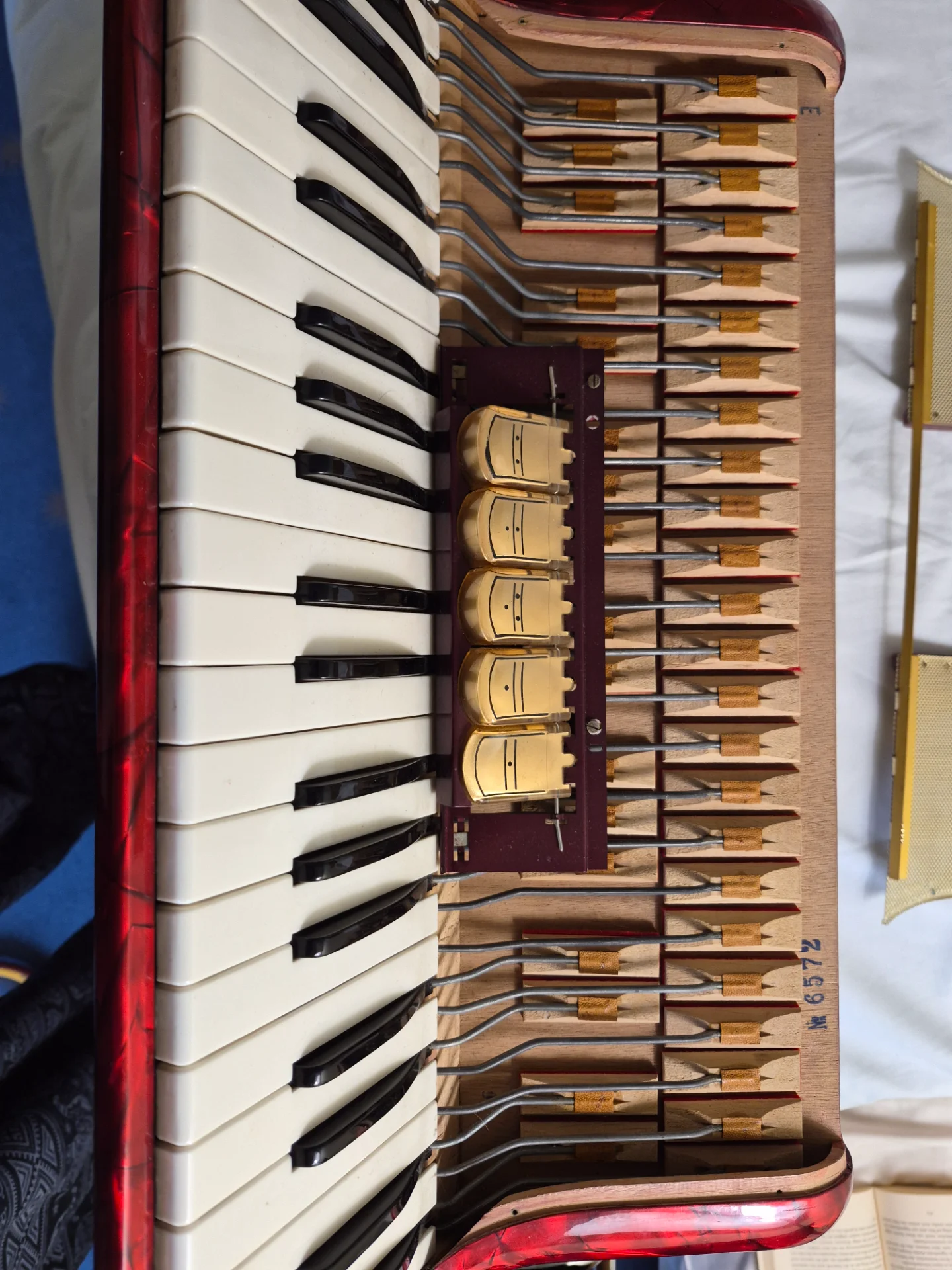 Auf einem alten Concerto IIIN, das mit meine Kollegen zum Abschied gechenkt haben, lerne ich seit eben dieser paar Wochen in Eigenregie Akkordeon. Leider quietschen bei dem Akkordeon ein paar Bässe. Nun habe ich mich von Maxitos und GrafZahls Beiträgen inspirieren lassen, und beschlossen zu lernen, wie man selber Hand anlegt, allerdings erstmal nicht am "guten" Akkordeon.