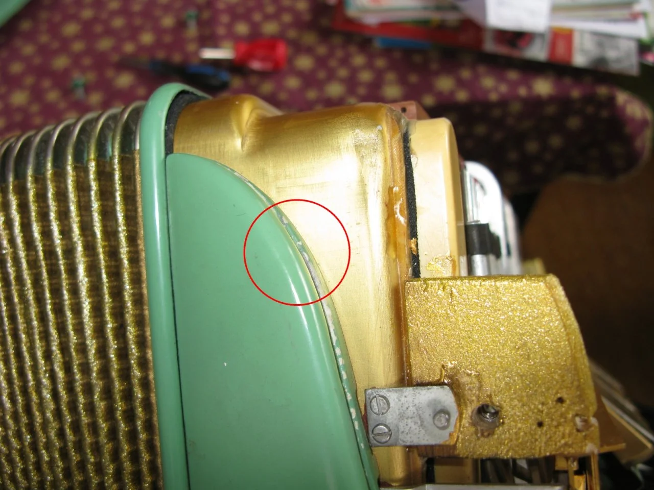 So, meine neue Balgdichtung sitzt. Dachte, dass ich damit schon fast gewonnen habe, aber weit gefehlt. Wenn ich das Verdeck vom Diskant abnehme, kommt mir immer noch ein Luftzug beim Drücken des Balges entgegen. Und er kommt fast direkt in meine Nase (wenn ich mich etwas nach vorne beuge). Und ich meine, er kommt aus dieser Schlitz-Öffnung und NICHT von den Klappen-Belegen.
