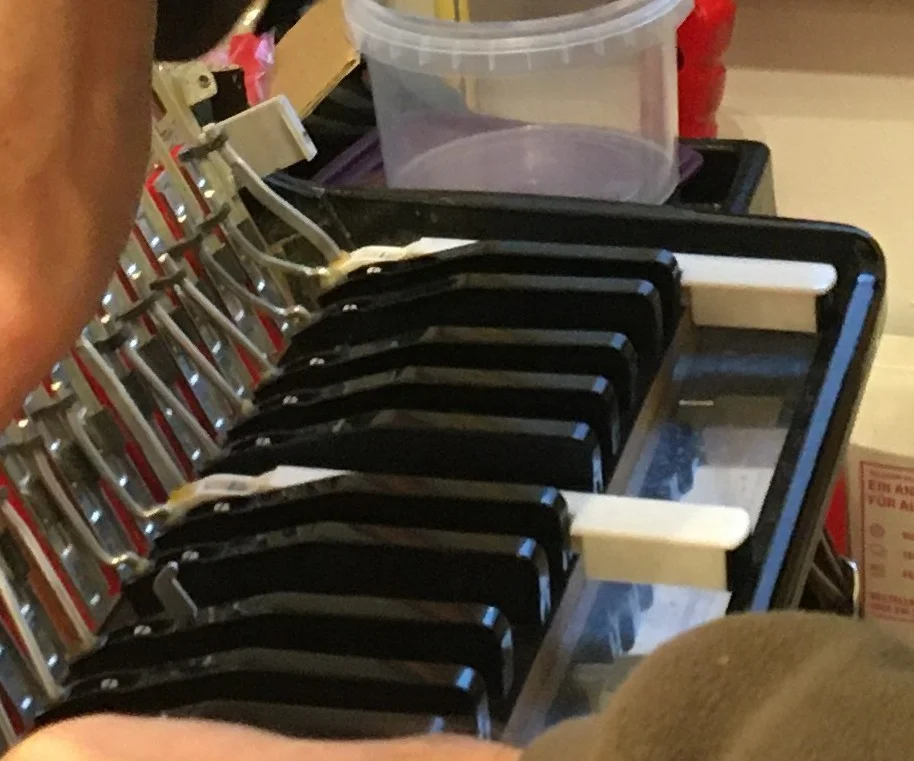 - Die klappernden Tasten haben Kontakt mit der Nachbar-Taste. Schiebt man die Nachbar-Taste beiseite, so hört das Klappern auf.