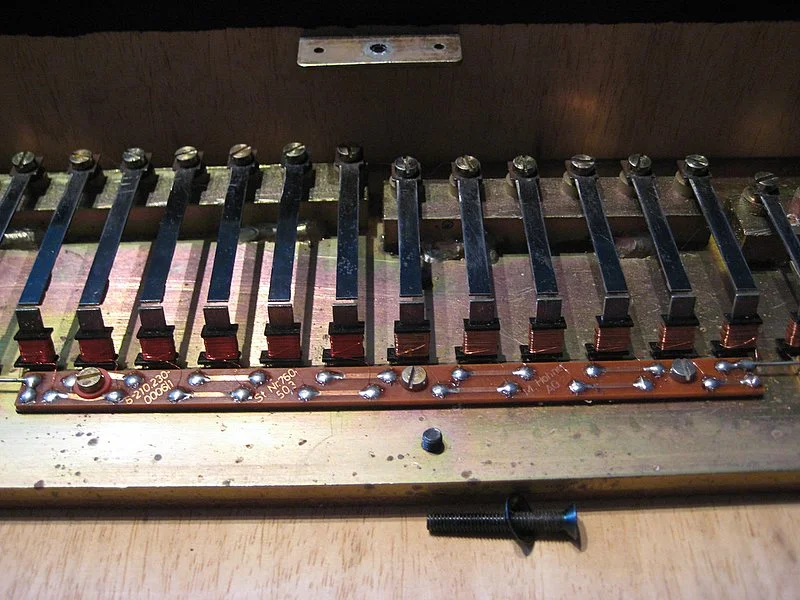 guten tag, ich habe die klangzungen vom pianet-t gesaäubert. mit feinem schleifpapier entrostet, dann aceton zur reinigung und anschließend korossionsschutz rauf. nun gibt es keinen ton mehr von sich. die tonabnehmer haben vorher alle funktioniert. könnte ich es durchs schleifen ent-magnetisiert haben? wenn ja, wieso funktionieren alle tonabnehmer nicht mehr? was muss ich tun, um die ursache herauszufinden? mit elektrizität kenne ich mich leide rnicht aus, deshalb so einfach wie möglich erklären. rechts ist eine platine, auf der ein rechteckiger metallteil drauf liegt. wenn ich den verstärker anschließe, gibt er geräusche von sich, wenn ich den schraubenzieger gegen klopfe. ein graues dickeres kabel geht von der anschlussbuchse an die platine, ein weiteres rotes kabel geht von der platine an die 1. länglcihe platine auf der gussplatte. würde mich auf detaillierte hilfe sehr freuen