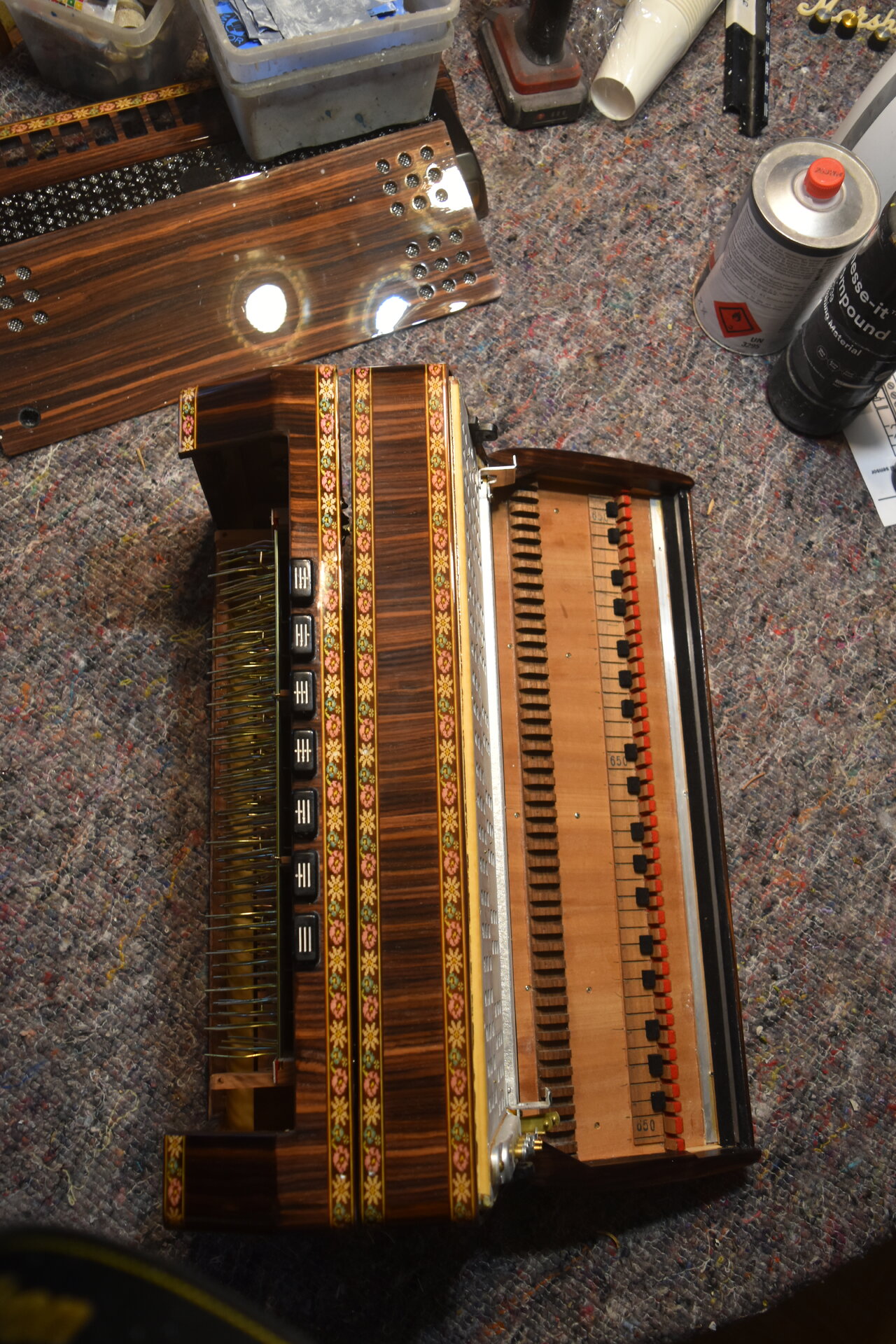 Hat jemand eine Ahnung was für ein Holz Zupan für die alten Akkordeons verwendet hat? Gibt einige Tropenhölzer die in Frage kommen. Lack ist nach vielen Jahren milchig geworden und ich habe den Verdacht da es vom Holz kommt.