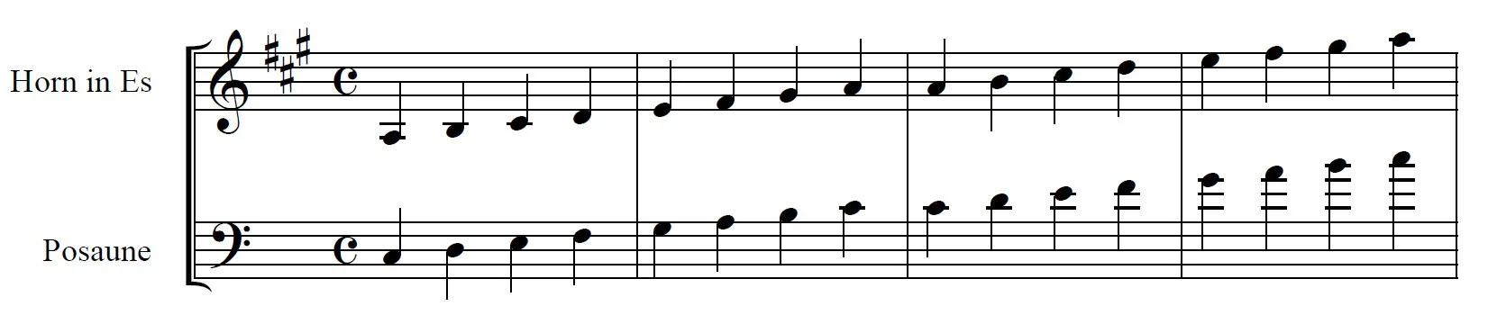 im Orchester werde ich wegen einer fehlenden Posaunenstimme stattdessen das 4. Horn übernehmen. Leider sind die Noten im Violinschlüssel in Es notiert. Wie transponiere ich das in den mir bekannten Bassschlüssel? Konkret: Was wird z.B. aus einer auf der untersten Notenlinie notierten Note für mich?