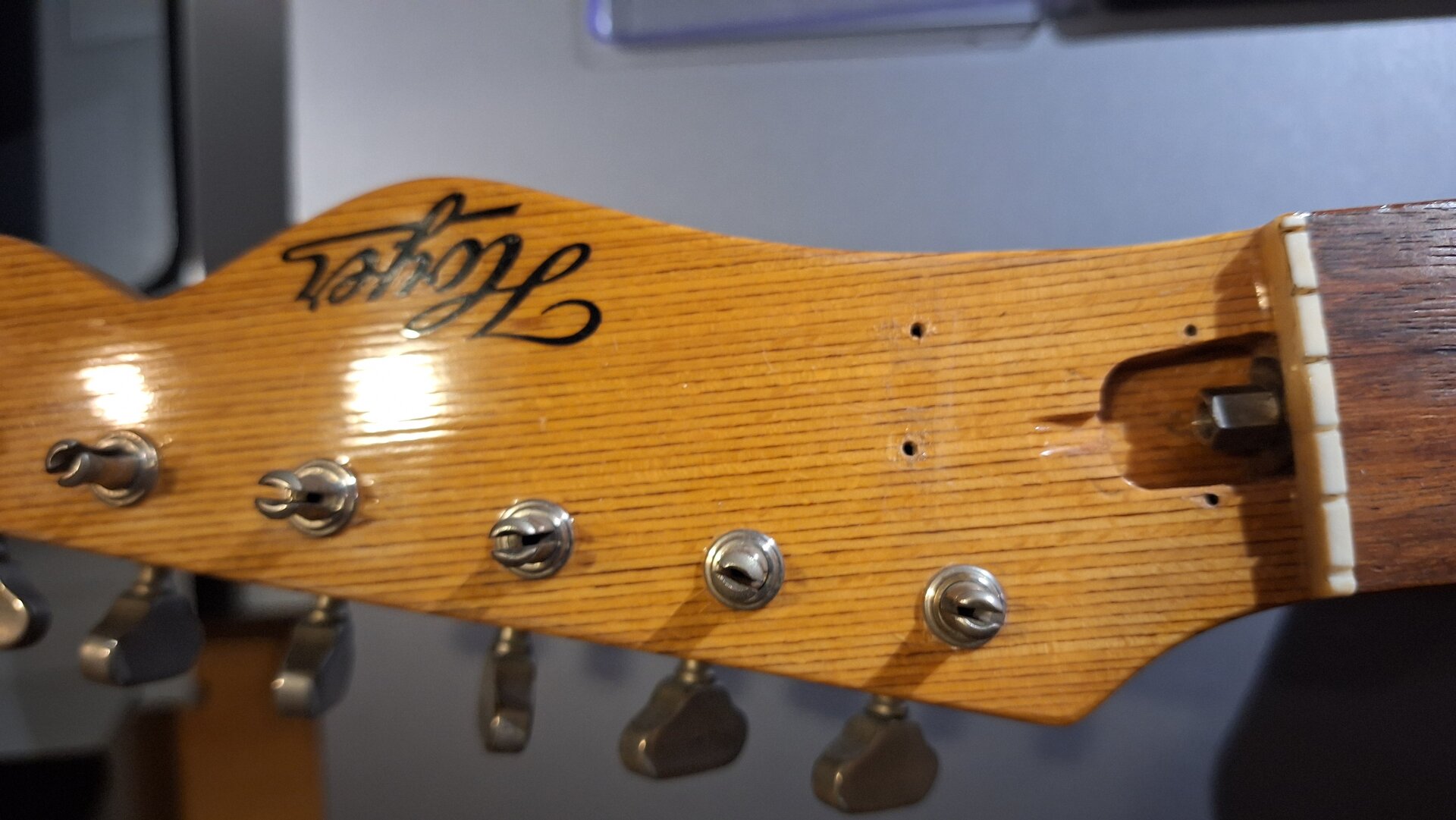 1984 dann nochmalige Überarbeitung, mit viel Binding auch an der Kopfplatte und anderen Materialien beim Korpus, mit Cedrella und auch tlw. Korina. Die Super 82 war ja ganz aus Korina gefertigt, der Hals eingeleimt. Scheinbar waren noch Halsabdeckplatten aus der 82er Super 82 Serie übrig, die Hoyer dann auf die 1984er/85er Varianten teilweise verbaute.