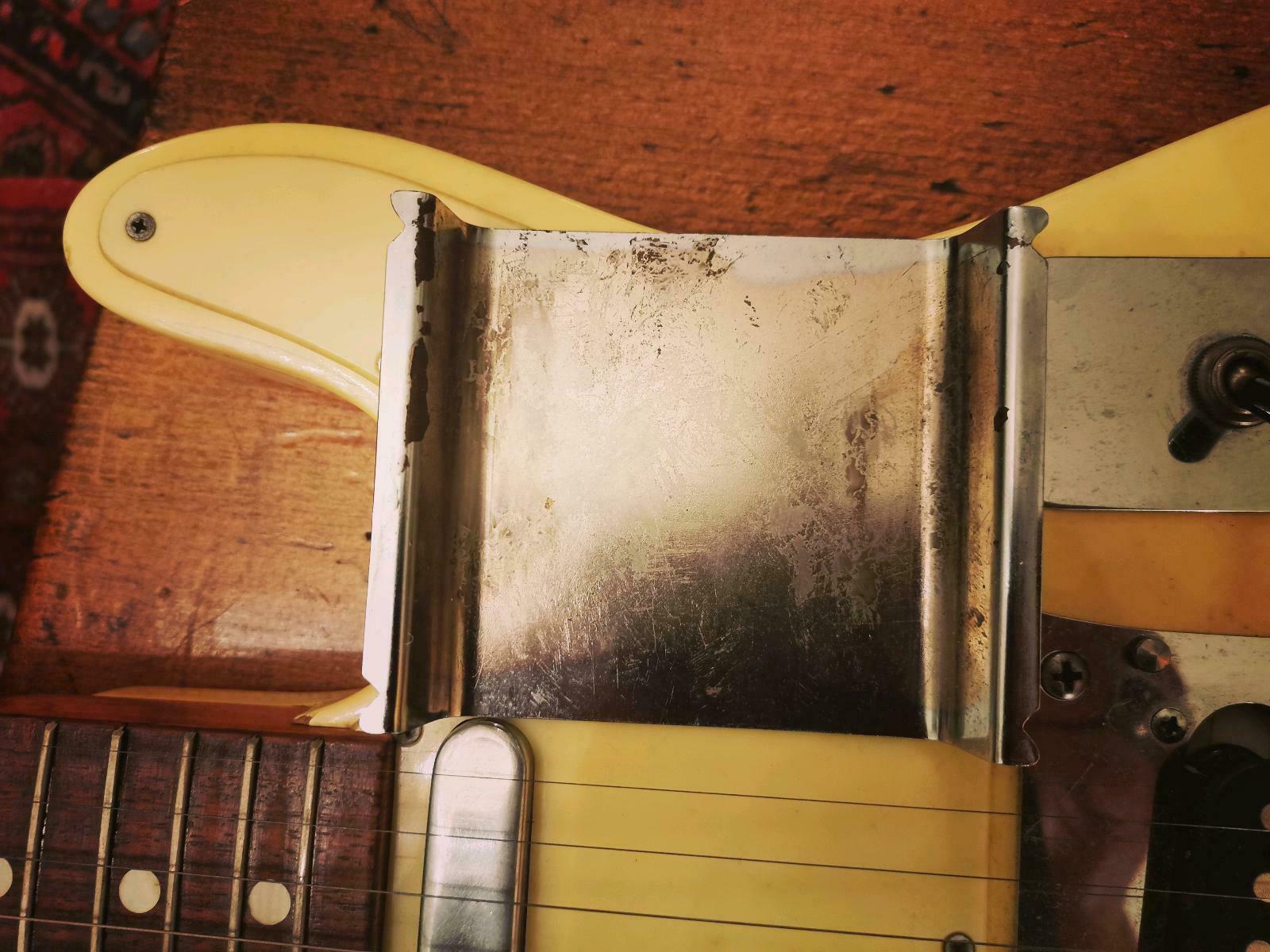 Etwas später (wohl noch in 1980) kam dann die 5069C mit dem dreieckigen Messingteil, durch das die Saiten auch in V-Form nach hinten geführt wurden. Es gab also bei der 5069C mehrere Ausführungen, 3 an der Zahl. Im Februar 1981 war sie schon wieder aus den Preislisten verschwunden, alle Varianten dürften so insgesamt so um die 30..35 mal gebaut worden sein.
