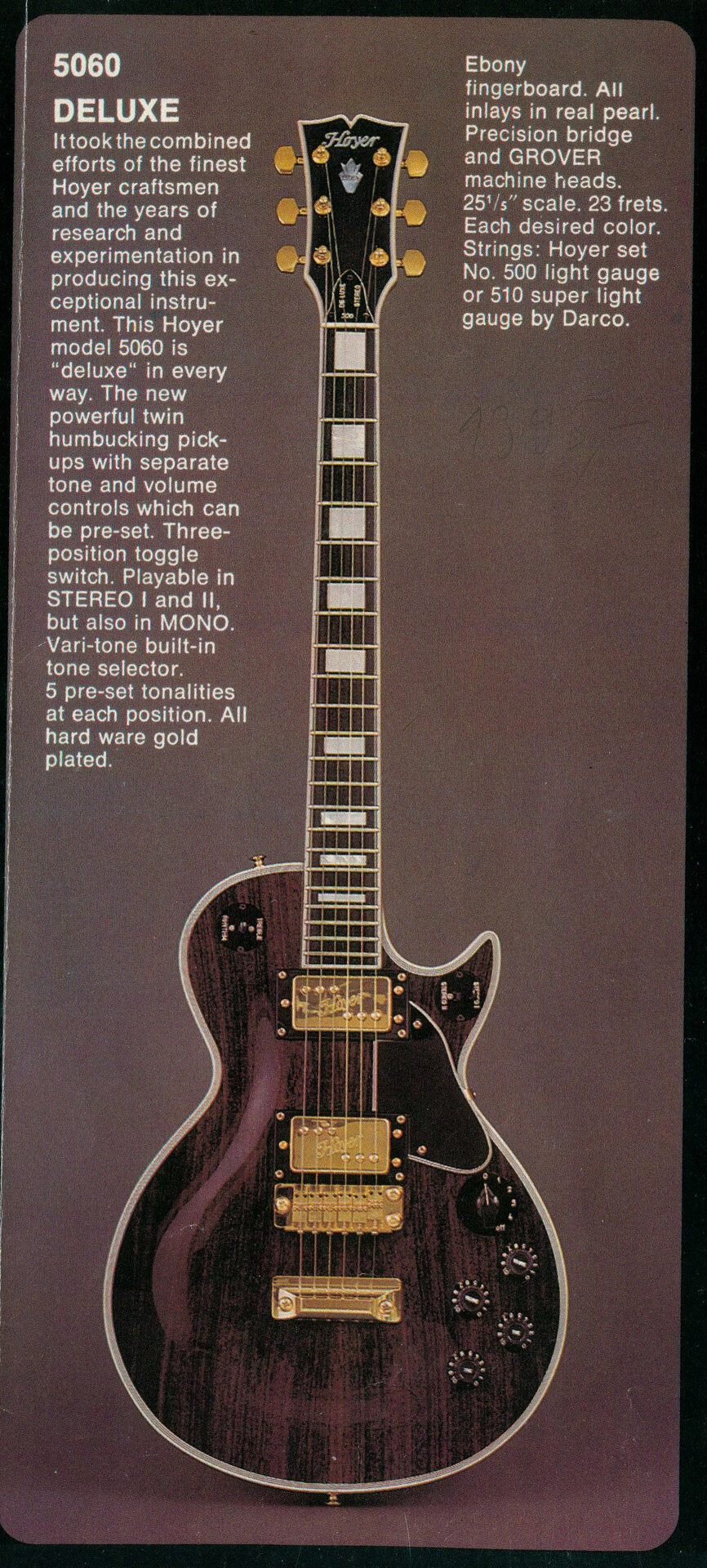 Ohja, sehr schöne Hoyer, sie ist lt. Seriennummer 1975 gebaut worden. Leider ist das Foto etwas unscharf, daher kann ich nicht recht sehen, ob es das Modell mit der Palisanderdecke ist, was in der Tat sehr selten ist. Anbei mal dessen Abbildung im damaligen Katalog.