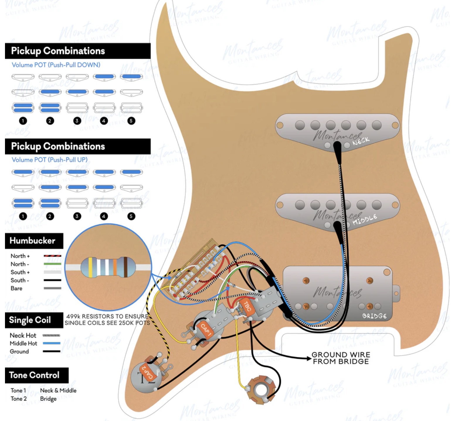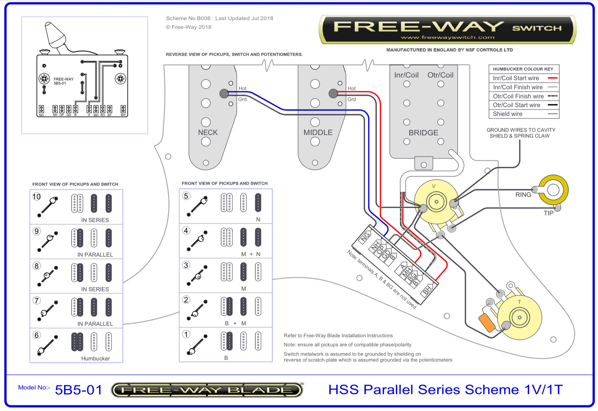 Da ich von Elektronik von Elektronik und Schaltungen kaum etwas verstehe, aber den Wunsch habe meine HSS - PAC 812W, 1x 500k Vol, 1x 250k Tonpoti - zu modifizieren, begab ich mich auf die Suche nach der passenden Wunsch Schaltung - N. Pickup in jeder möglichen 5-way Schalterpos. zuschaltbar zu machen, so auch den HB Split in allen nötigen Schalter Positionen.