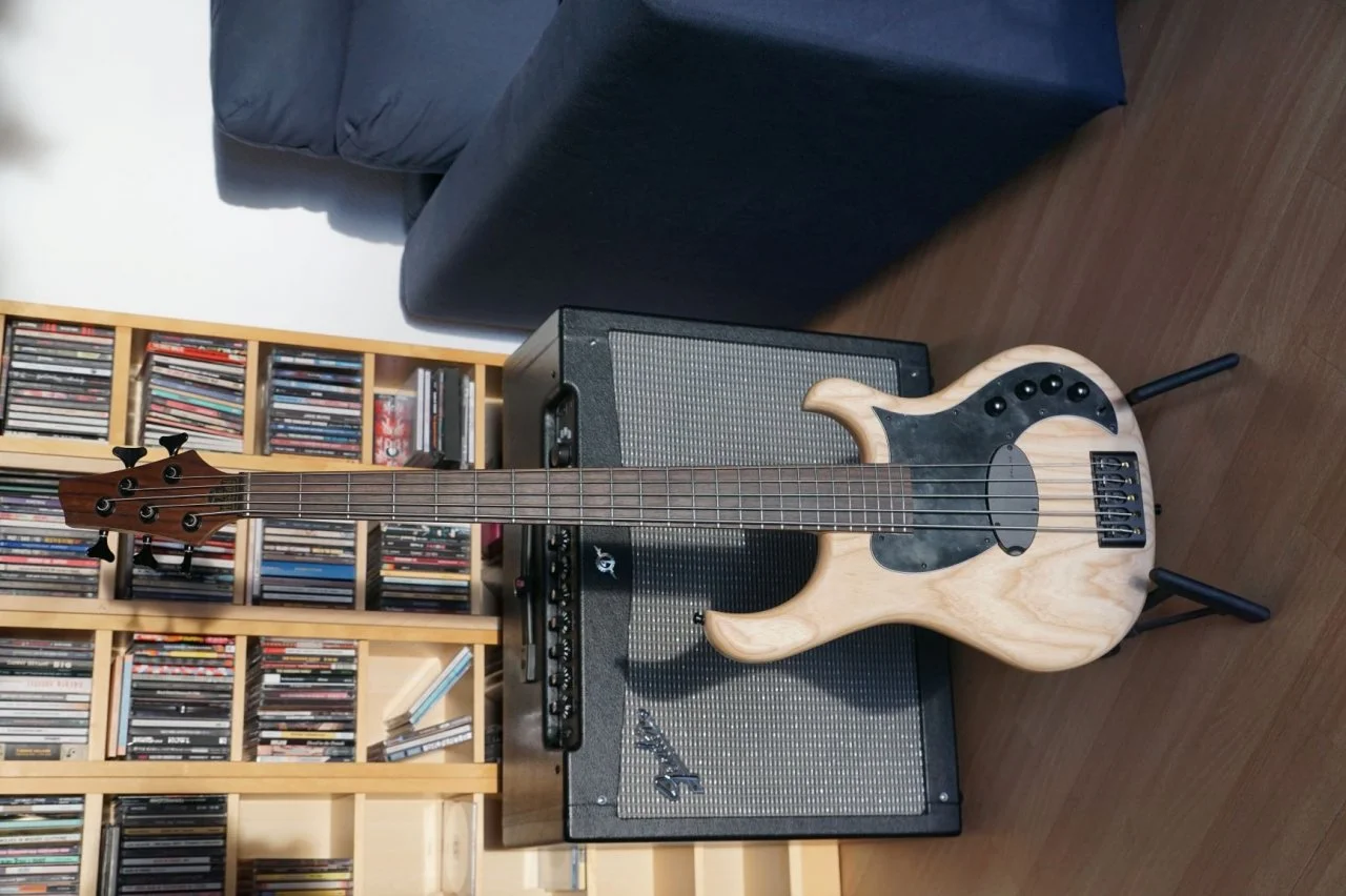 Ich war mit meinem Viersaiter (FGN J-Standard Mighty Jazz Dark Evolution) vollauf zufrieden und das bin ich auch immer noch, denn dieser Bass bietet in puncto Qualität, Verarbeitung und Ausstattung mehr als vergleichbare Modelle der gleichen Preiskategorie. Das Thema Fünfsaiter fand ich schon länger interessant, aber konkret benötigt hatte ich noch keinen. Als ich mit immer konkreteren Wünschen aus der Richtung moderner Rock- und Metalmusik in den Bassunterricht kam, setzten wir die Lieder auf dem Viersaiter um, soweit das möglich war. Der FGN kann schon sehr weit runter und ist immer noch wesentlich straffer und genauer als viele andere Instrumente, was aber schon sehr oft von der Saitenspannung für mein persönliches Empfinden unangenehm wurde. Dann kamen wir an den Punkt, dass einige Songs ohne einen Fünfsaiter nicht funktionierten und es musste einer gesucht werden. Ich war versucht ein günstiges Modell online zu ordern, wälzte dabei viele Reviews und Bewertungen auf den verschiedensten Websites und nach und nach ernüchterten sich meine Vorstellungen und die anvisierten Modelle wurden eher teurer, wobei ich noch in Richtung der Budgetvariante tendierte, falls mir die Fünfsaiter auf Dauer doch nicht zusagen würden.