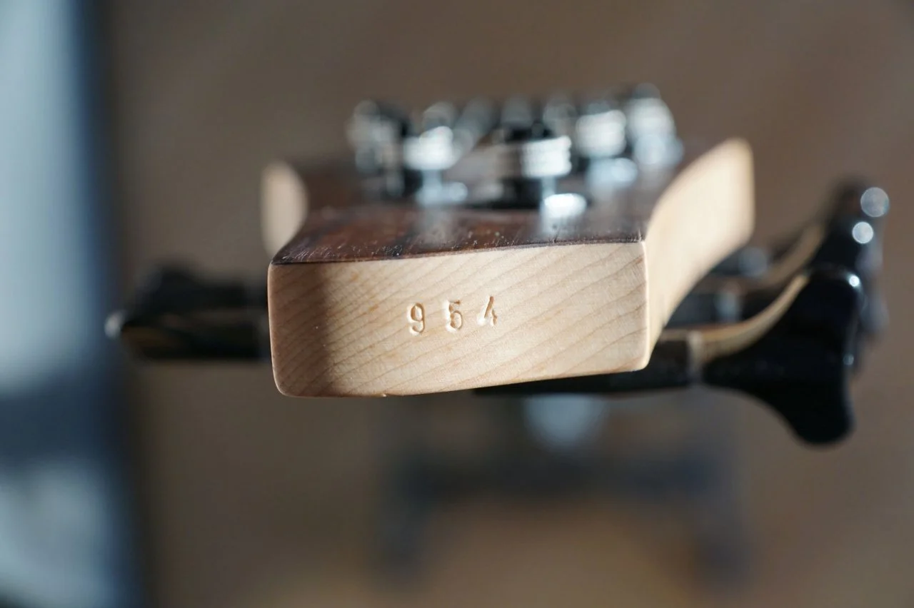 Auf der Oberseite der toll designten Kopfplatte befindet sich übrigens eine eingestanzte Seriennummer statt eines leblosen Aufklebers, was dem wunderschönen Instrument noch einmal deutlich mehr Charme, Charakter und Individualität verleiht.