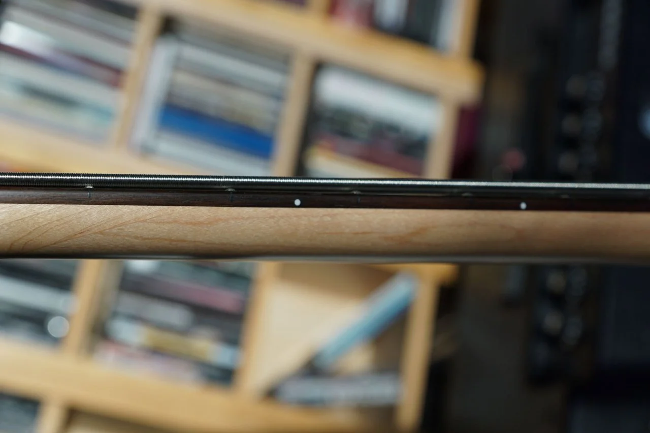 Eins der Hauptmerkmale ist die sehr straffe B-Saite und das können leider die wenigsten Hersteller. Die große Schwierigkeit eines guten Fünfsaiters scheint das Geheimnis einer straffen B-Saite zu sein. Weiterhin glänzt der Roxy B5 OPN durch die extrem gute und leichte Bespielbarkeit und seinen flachen Hals. Beim Roxy B5 komme ich spielend leicht in die höchsten Lagen, so dass das Spielen in diesen tonalen „Niederungen“ am unteren Ende des Halses eine wahre Freude ist - nicht dass ich sie bräuchte, aber sie so spielend leicht zu erreichen macht Freude und lädt einen Freund des Drop-Tunings wie mich auch mal zu „Höhenflügen“ ein! Der Hals ist übrigens etwas flacher als der meines viersaitigen FGN J-Standard Mighty Jazz Dark Evolution, aber auch nicht zu dünn und lädt durch seine extrem gute Bespielbarkeit zu schnellen Läufen ein.