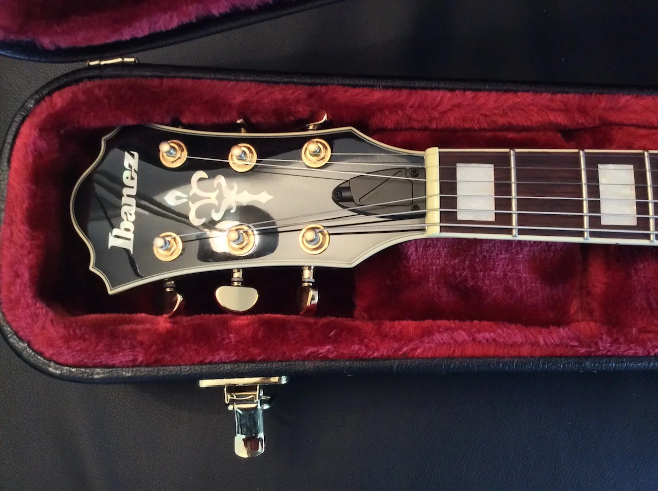 ich bin glücklicher Besitzer einer Ibanez AS93-VLS. Da man das gute Stück ja doch mal irgendwohin mitnehmen möchte, habe ich mir den passenden Koffer AS-C bestellt. Allerdings bin ich leider nicht ganz zufrieden mit dem Koffer, denn die Mulde in der hinteren Querwand des Faches im Inneren, in der der Gitarrenhals aufliegt, ist nicht in der Mitte. Durch den dicken Plüschstoff sieht es zwar so aus, aber wie man oben am Kopf ganz deutlich und auch im Bereich des Körpers erkennen kann, liegt die Gitarre schief im Koffer. Das lässt sich leider auch nicht durch manuelles Zurechtrücken beheben, weil die Gitarre natürlich immer wieder in die Mitte der Mulde rutscht.
