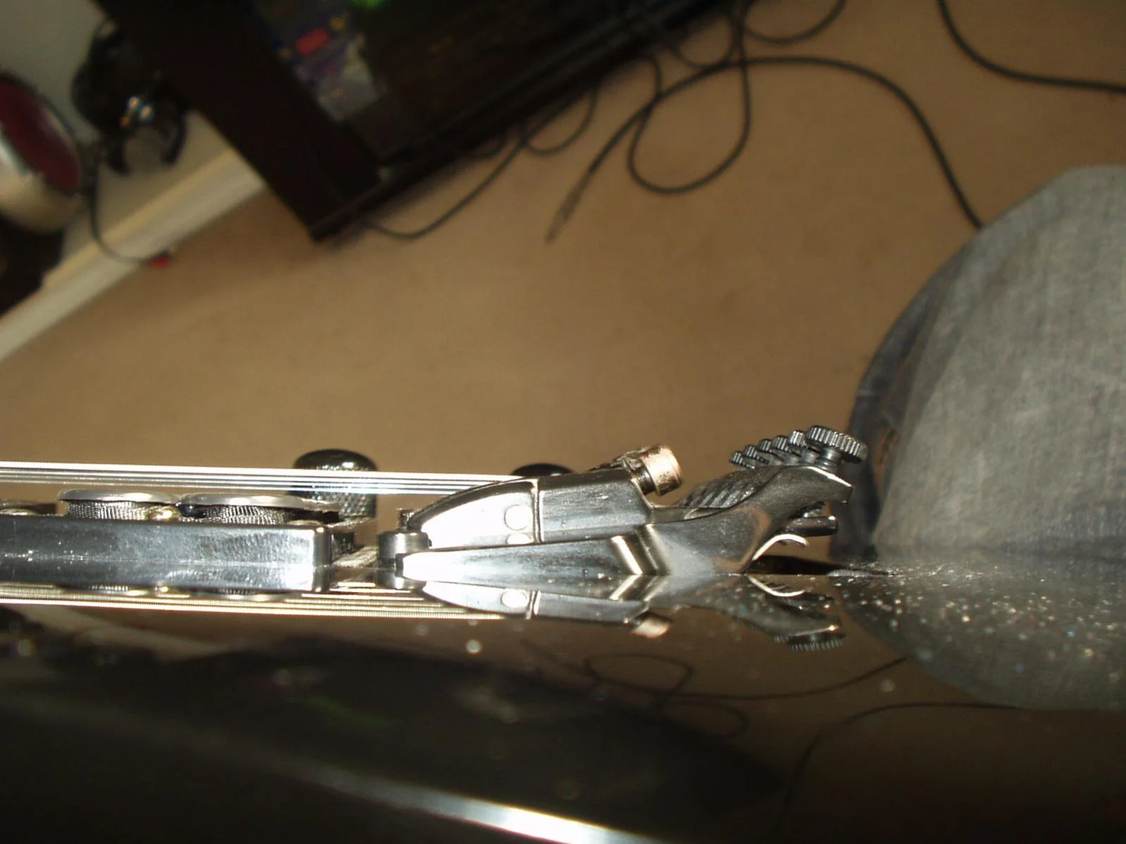Ideal wäre es, wenn die Unterkante parallel zum Korpus steht. Bei dir ist es ja Momentan leicht angewinkelt. So hat man auch viel weniger Spielraum mit dem Tremolo-Arm!