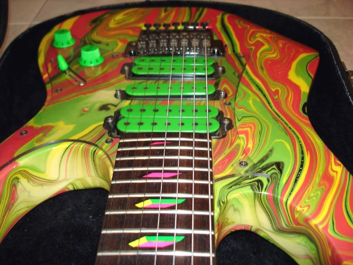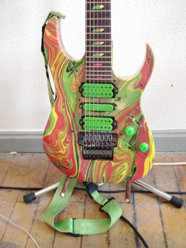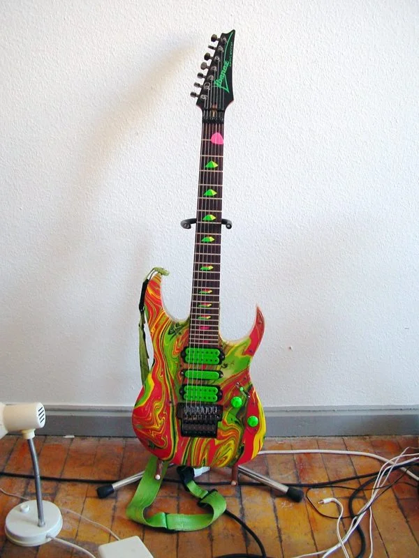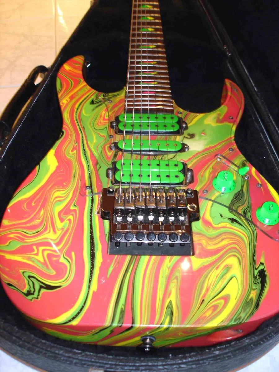 ... von einem User des Musiker-Boards für kleines Geld erworben. Das RT der Serie steht für "retro" - eine gelungene Kombination aus Strat-Bauweisen und RG-Bespielbarkeit. Schönes Rockbrett mit Porno-Optik. (ausführliches Review folgt)