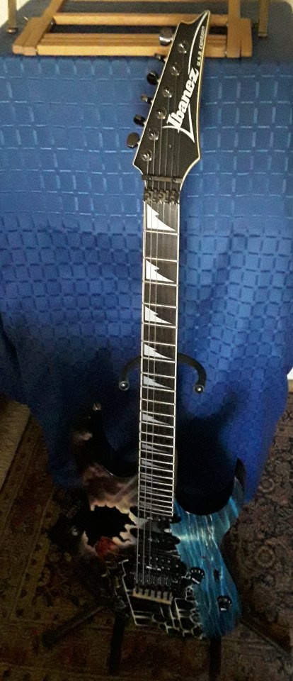 Na, dann trage ich hier auch mal was bei. Nachdem ich um Ibanez lange einen Bogen gemacht habe, schlug ich gleich bei zwei Iron Label zu. Zum einen eine RGAIX6FM-TGF (2016):
