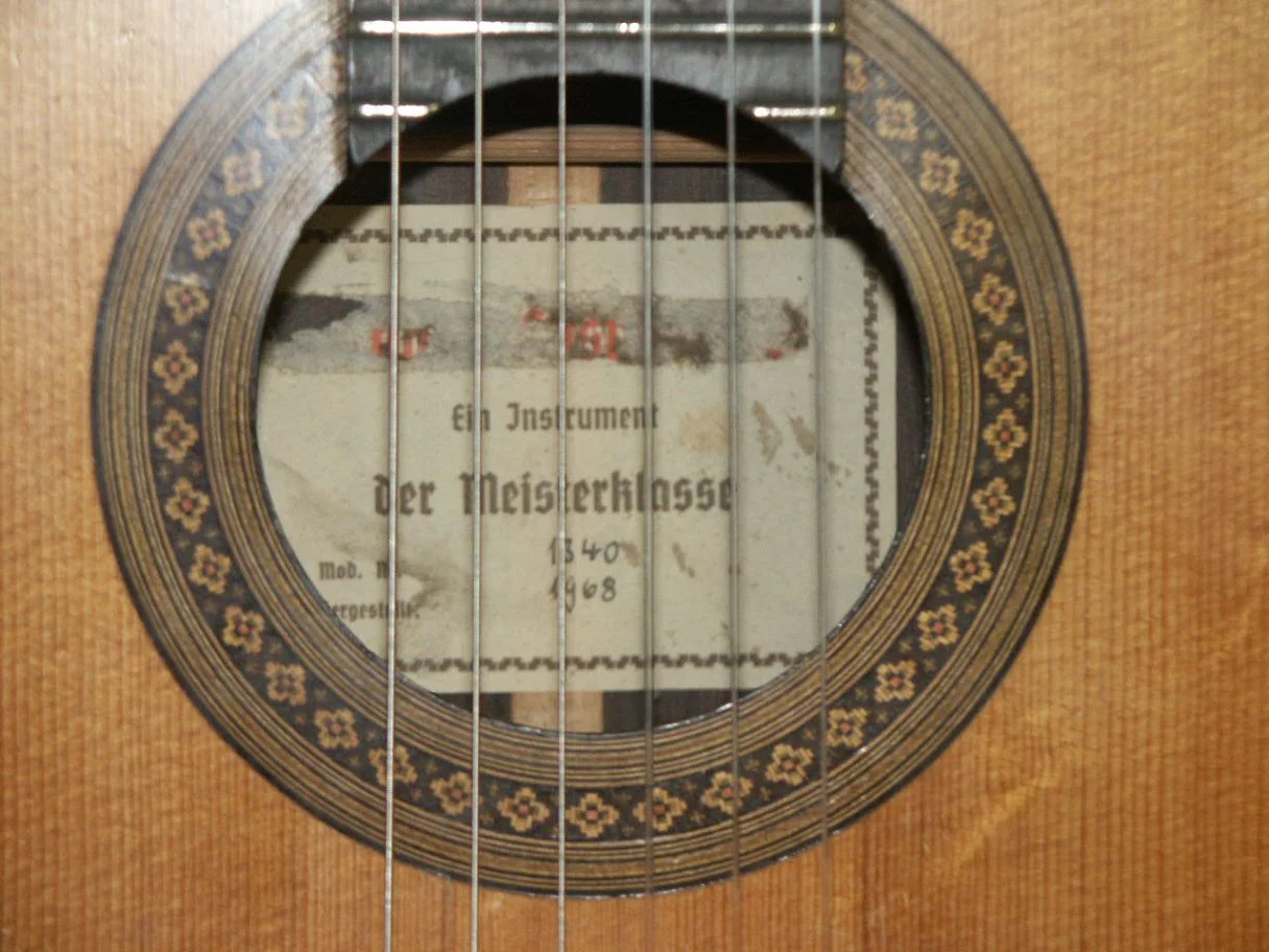 ich hab vor kurzem ne alte Konzertgitarre restauriert, dabei und danach ist mir aufgefallen dass das gute Stück ziemlich ordentlich ist, aber leider der Hersteller auf dem Aufkleber im Inneren der Gitarre unkenntlich gemacht wurde (warum auch immer).