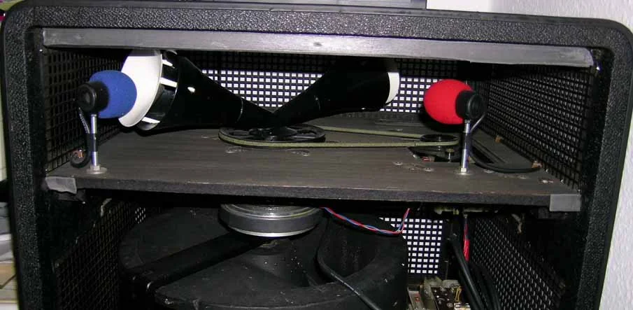 besitze ein solches Motion-Sound, dabei fasziniert mich immer wieder die fast nicht hörbaren Windgeräusche. Nun habe ich versucht die Innereien zu analysieren, aber leider Pustekuchen, man sieht nur eine schwarze Kapsel aus sehr hartem Schaumstoff welche man wahrscheinlich nicht so ohne weiteres öffnen kann (sieht aus wie verklebt). An der Unterseite befindet sich ein Deckel den man abschrauben kann. Da sieht man den Magneten eines Motorola Powerline-Speakers, sonst nichts. Hatte die gleichen Micro-Kapseln in mein Hohner ORT100 reingebaut, aber trotz Popschutz sind die Windgeräusche noch gewaltig, man muss dann am FOH alles unter 1000 Hz absenken.