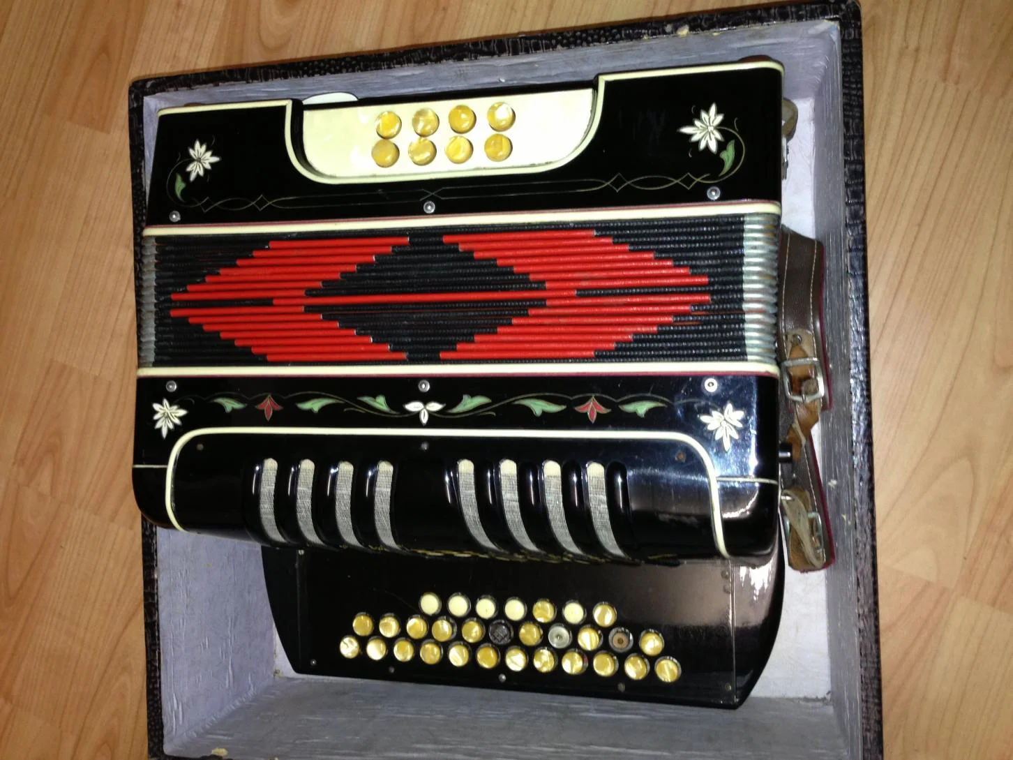 es handelt sich hier nicht um ein Akkordeon, sondern um eine diatonische Harmonika mit 8 Bässen, wahrscheinlich Club-Modell. Das bedeutet, das bei Zug und Druck unterschiedliche Töne erzeugt werden. Mitr scheint, dass es Dir nicht so sehr auf das Alter des Instrumentes ankommt, als vielmehr darum, was Du dafür wohl beim Verkauf erzielen könntest. Der Wert hängt natürlich sehr stark davon ab, wie der Zustand ist, wie z.b.: