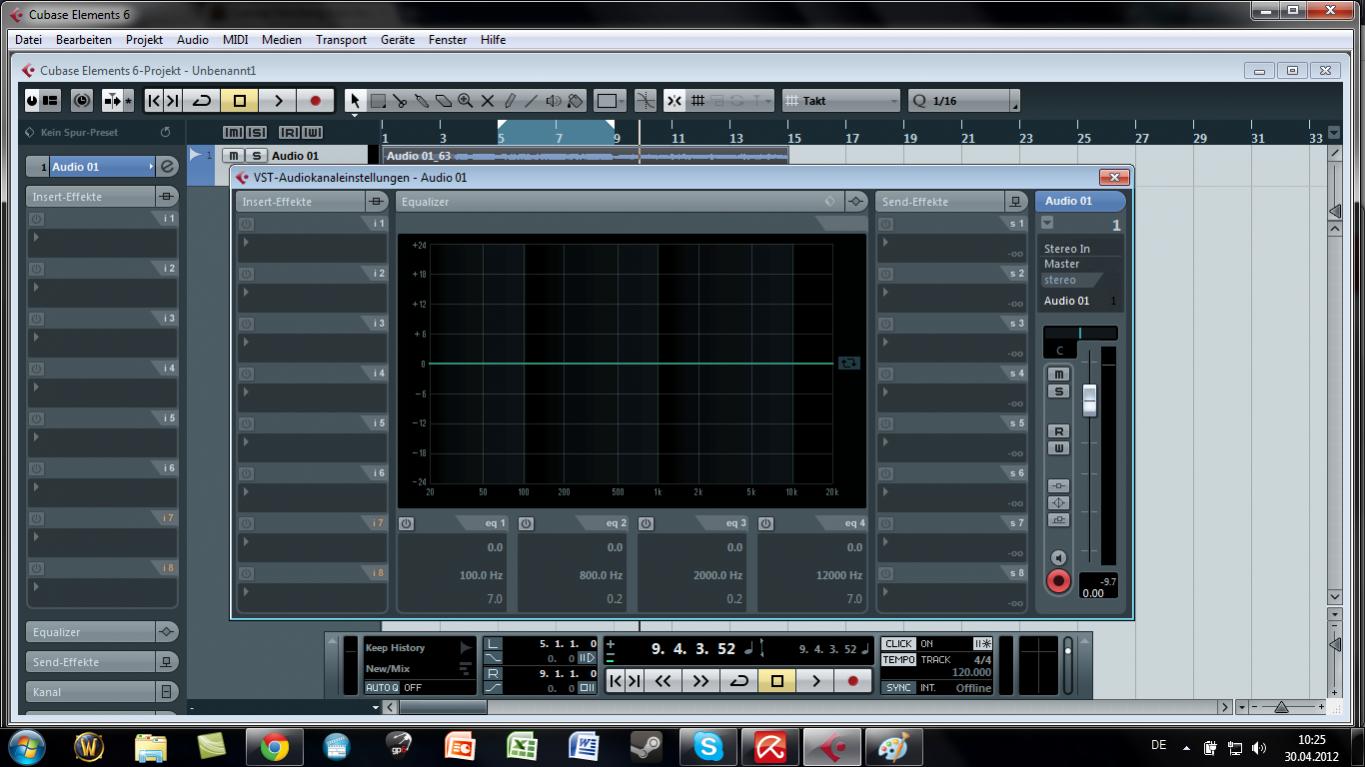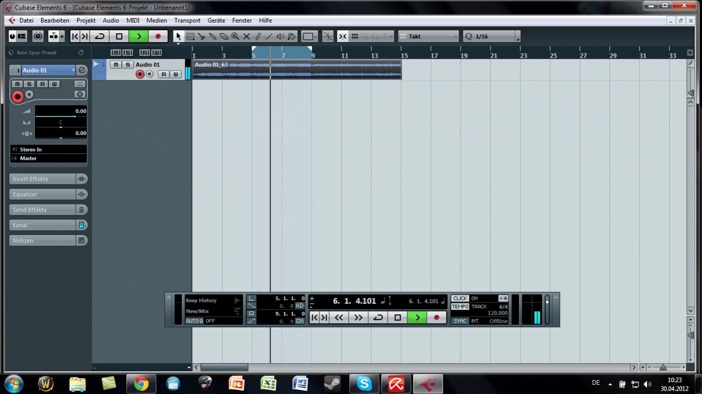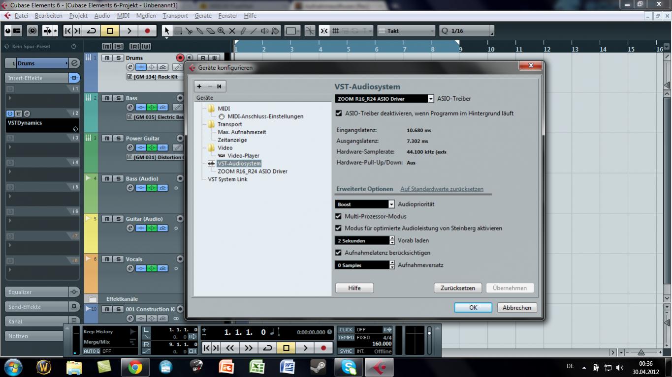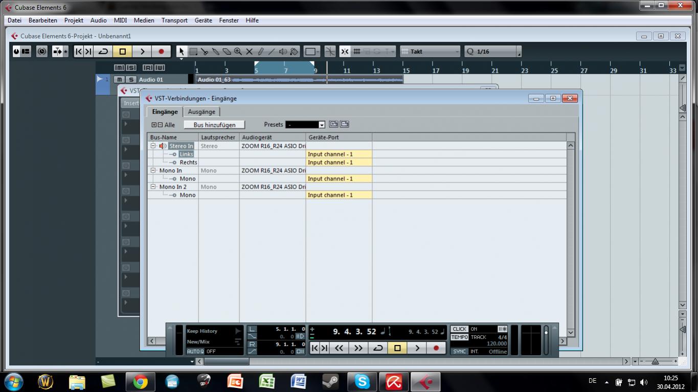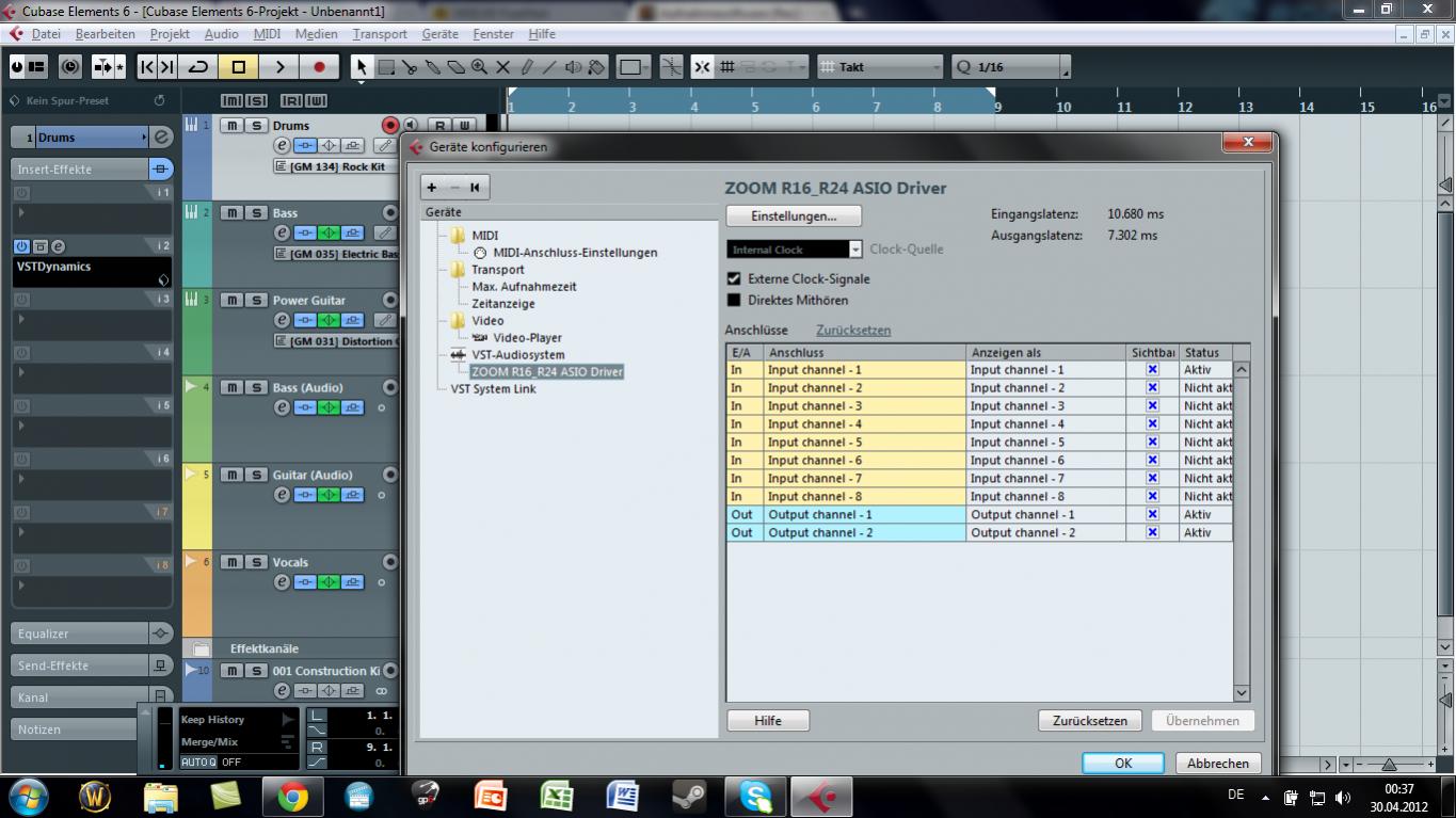 Zunächst mal mein Equipment: Recorder Zoom R16, Onboard Soundkarte, Cubase Elements 6