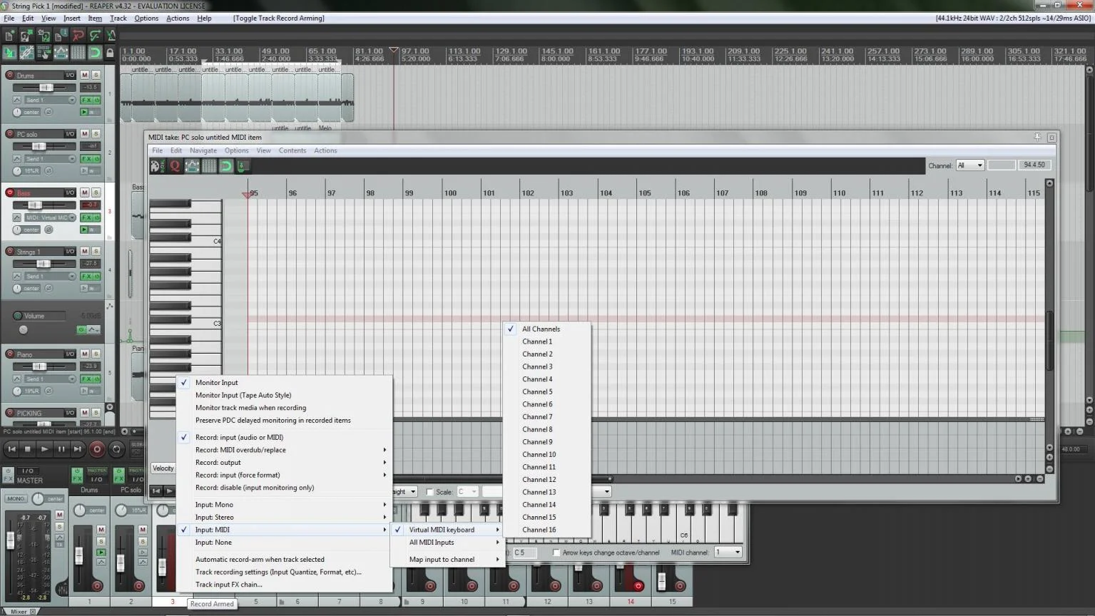 Auch über das virtuelle Midi-Keyboard kann ich Töne erzeugen - aber nicht aufnehmen (record).