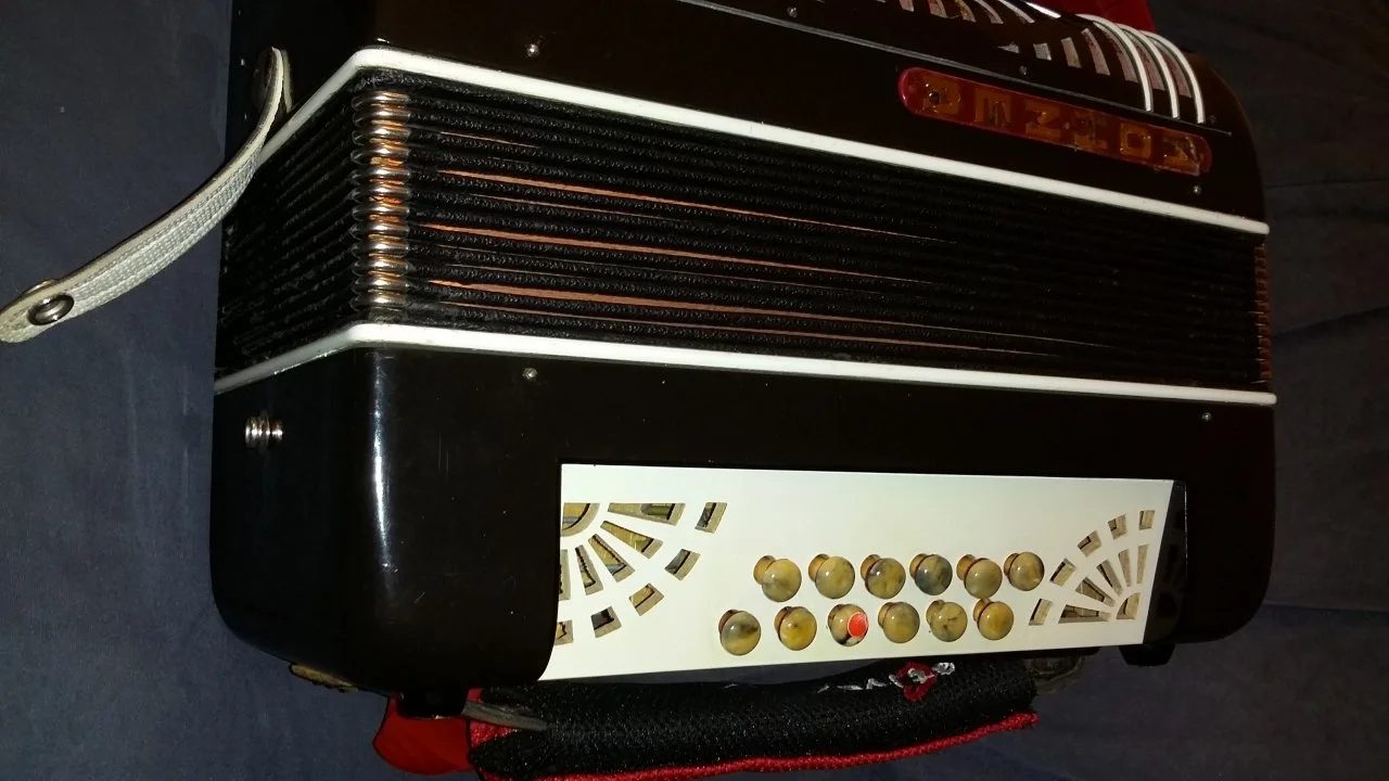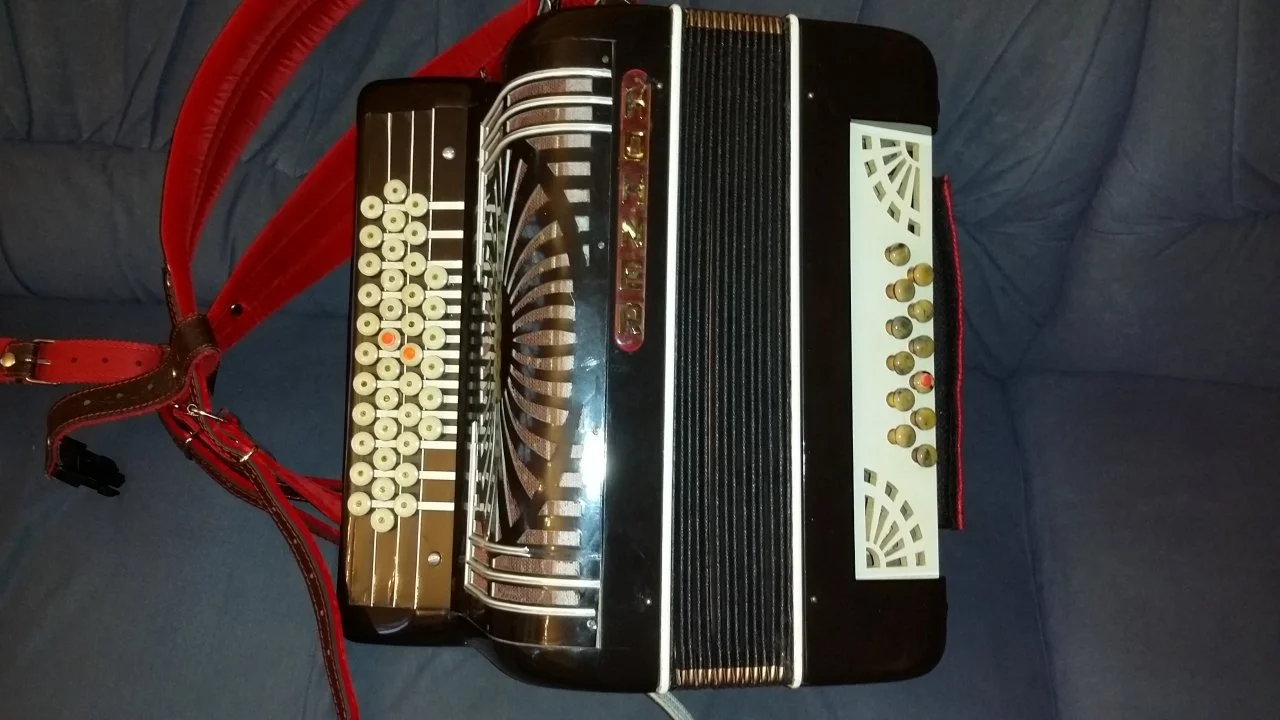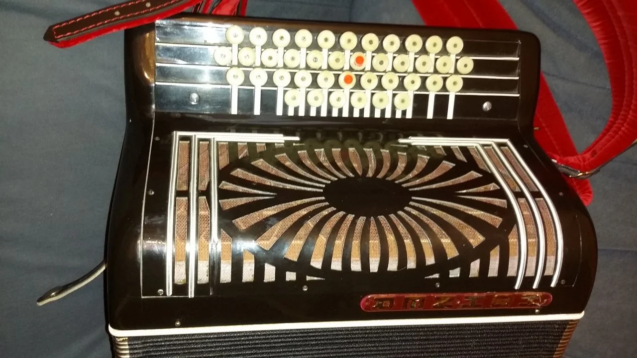 Schon die Form der Bassknöpfe habe ich noch nie gesehen (Pilzform). Auch das Hohner-Schildchen kommt mir eher vor, wie wenn das mal auf einer Atlantic gepappt hätte, es passt also wirklich nicht zu dem Gerät.