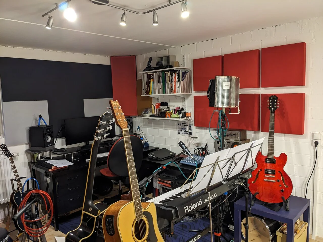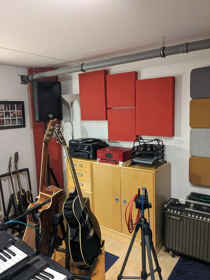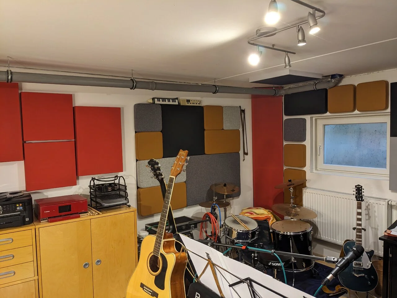Ich spiele in meinem Keller zu Hause E- und Akustik-Gitarre mit und ohne Gesang (unterschiedliche Musikstile), oft mit Playalongs. Der Keller ist 3,60 x 4,40, also knapp 16m2 groß und 2,25m hoch. Das wesentliche (schon ältere) PA-Equipment besteht aus folgenden Komponenten: Endstufe powermaxx MS6500 (2x590 Watt), 2 Fullrange-Boxen (passiv) Electro Voice EV SX100+ (je 200 Watt). Instrumente, Mikrofone u.a. werden über einen Mixer (Alesis Multimix 12 FX) mit eingebundenem Audio-Interface Focusrite Scarlett 2i4 eingesetzt.
