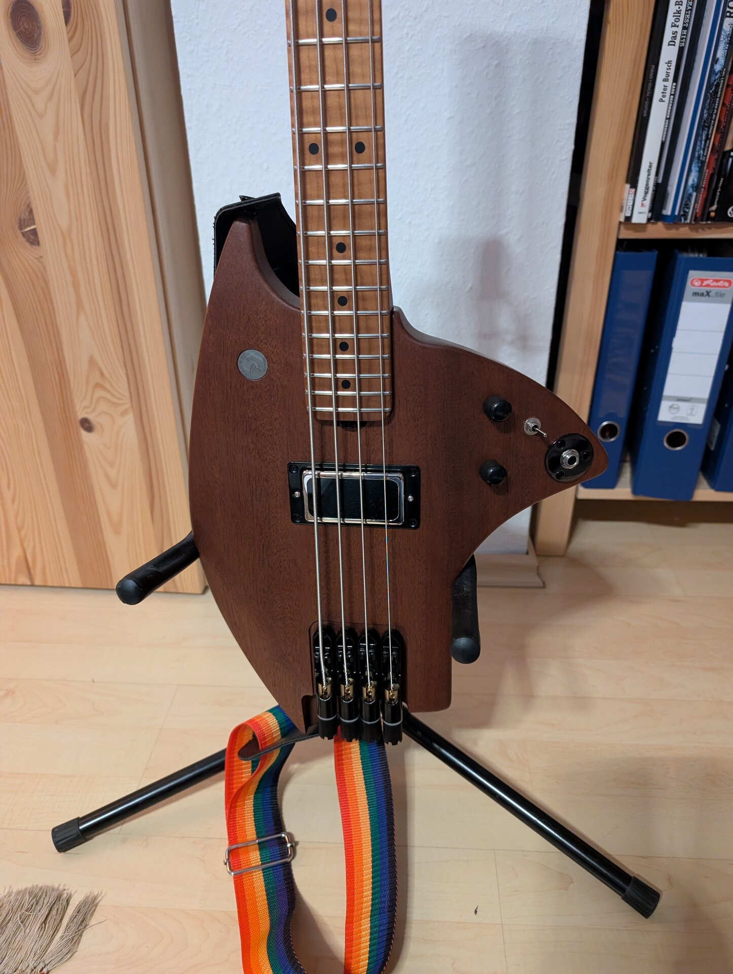 Im November bin ich drei Wochen durch Asien gereist und hatte einen Höfner Shorty Bass dabei. Leider kam ich mit dem Instrument nicht gut zurecht: Die Kopflastigkeit ist bekannt, und mir fehlte eine Auflage für die rechte Hand. Nach meinem Urlaub ging ich dann auf die Suche nach einem headless short scale Bass, und bin bei Kolibri Guitars fündig geworden. Über die Webseite habe ich eine Anfrage gestellt, und prompt kam der Rückruf von Daniel Kost, dem Mann hinter der Marke. Kurzerhand habe ich ein Instrument vom Lager bestellt, und nach ein paar Tagen kam der Bass sicher verpackt bei mir an. Und nachdem ich nun fast eine Woche darauf gespielt habe, möchte ich nun mein erstes Review hier in diesem Forum posten. Wenn ich etwas vergesse oder ihr weitergehende Fragen habt, fragt gerne nach. PXL_20251229_202143143.jpg