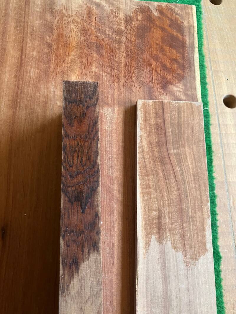 Will keine Attack-Sustain-Diskussion lostreten, aber wenn man davon ausgeht, dass bei der E-Gitarre jede Schwingung im Holz ein Energieverlust ist -- und das nicht möchte -- dann ist, gepaart mit einem 1A-Mahagoni-Hals, die Eiche unter den Hölzern die ich bisher verarbeitet habe der Sieger: Der Ton ist sofort und sehr präsent da. Das ist richtig auffällig.