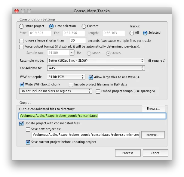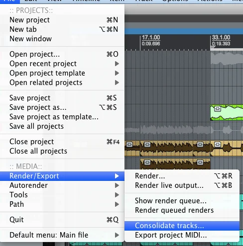 ich bin gerade auf der Suche, wie ich in Reaper einen Clip auf eine bestimmte Zeit konsolidiere, ohne ihn zu "gluen" und eine neue Datei zu erstellen, und dann entsprechende Clips markieren und als einzelne Dateien inkl. Automation und (Spur/Clip)Effekten ausspielen.