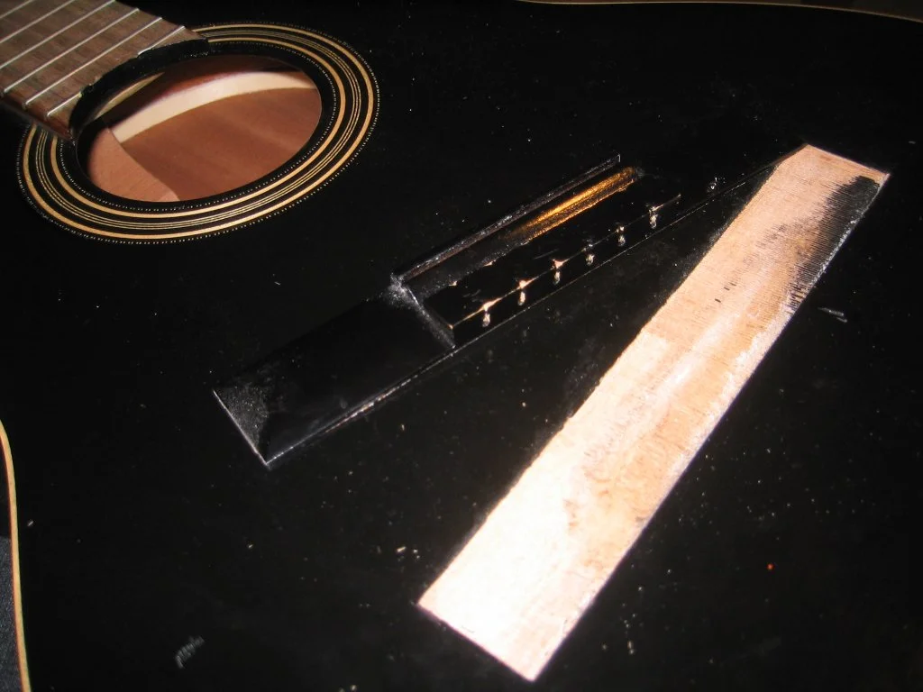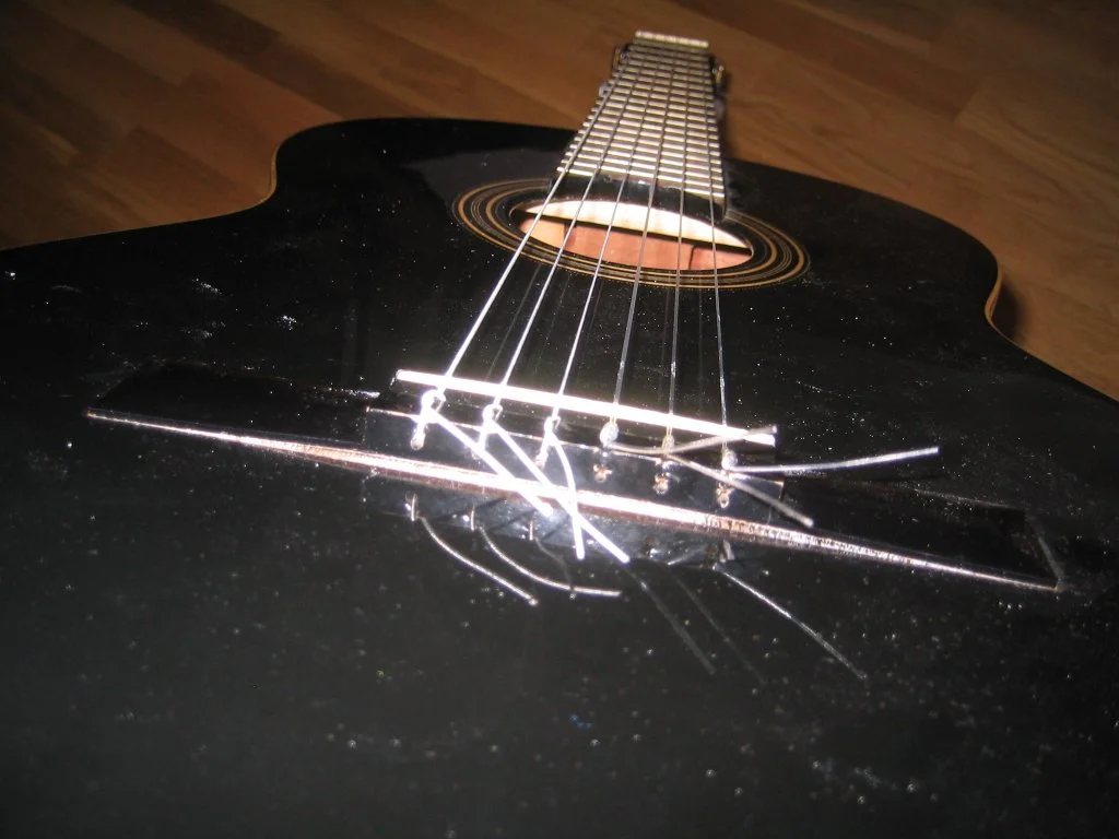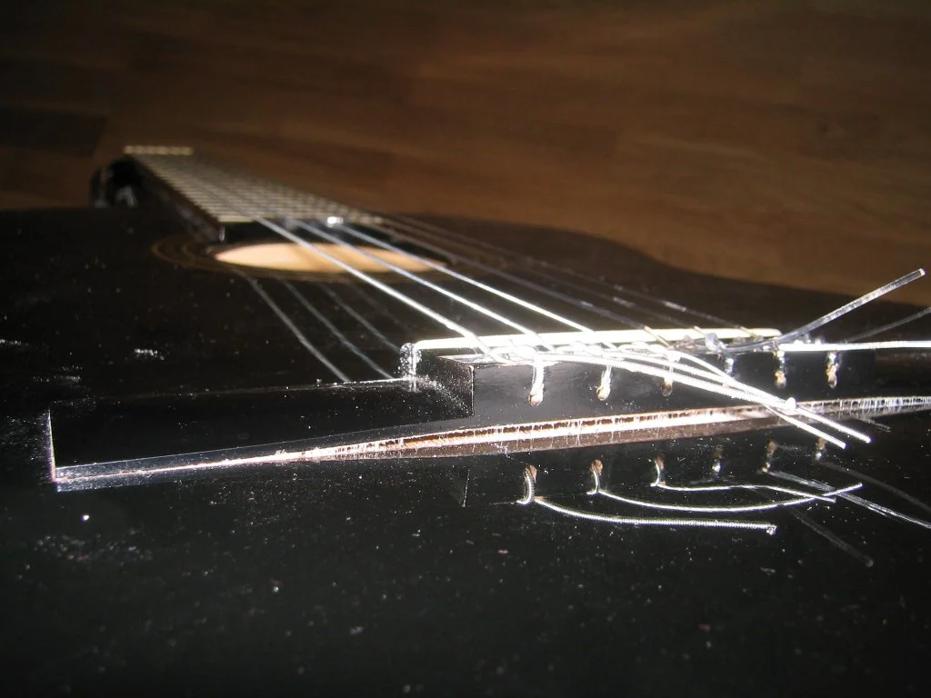 (siehe Fotos) Offenbar waren die Saiten mit ihrer "Extra hard tension" etwas zu fest. 😡 Jetzt habe ich erst mal alle Saiten gelockert, damit's das Teil nicht ganz zerreißt. Und ich überlege, die Gitarre zum Guitar Center Cologne zu bringen und um zu fragen, ob sich die Reparatur lohnt.