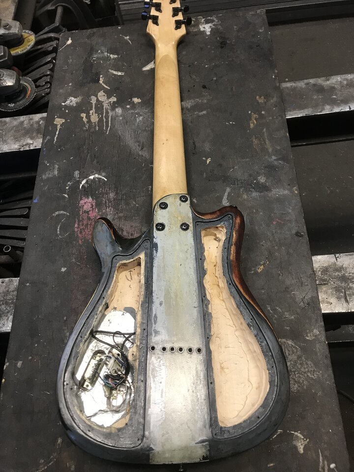 Das war ja genau mein Problem: Gitarre sollte insgesamt leichter, war aber bereits etwas kopflastig. Ich wollte es nicht noch schlimmer machen durch die Aktion. Ist aber auch nicht schlechter geworden. Im Prinzip könnte man jetzt etwas von dem gesparten Gewicht weiter nach hinten im Hohlraum wieder anbringen (kleiner Bleiklotz ist gut, aber diese Mengen die oben auf dem Foto eingebracht wurden, das ist schon krass!)@36Gollum