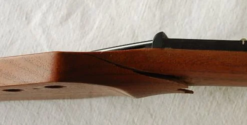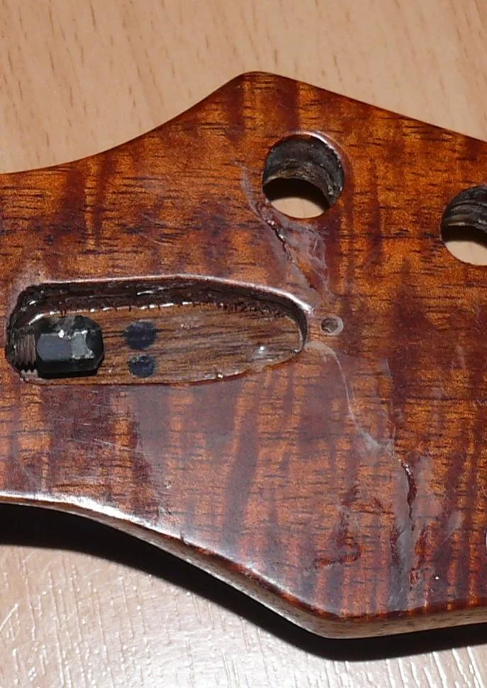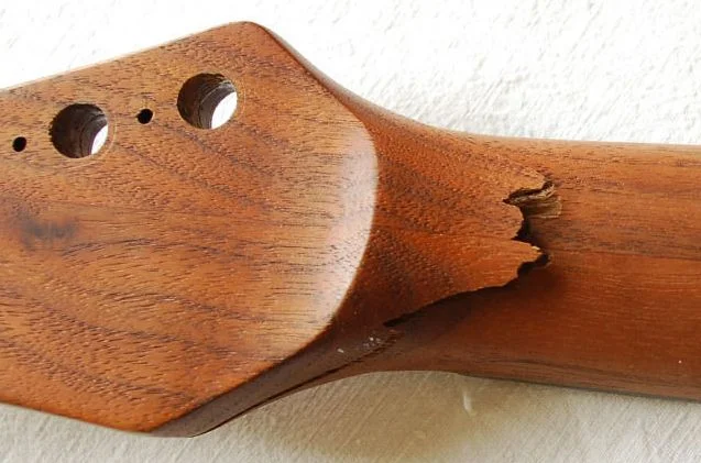 ich möchte an einem Hals leimen (Bruch siehe Bilder), habe so etwas aber noch nie gemacht. Die Kosten für einen Gitarrenbauer würden den Preis des Halses nicht rechtfertigen. Deshalb denke ich, dass er ein gutes Versuchsobjekt abgibt.
