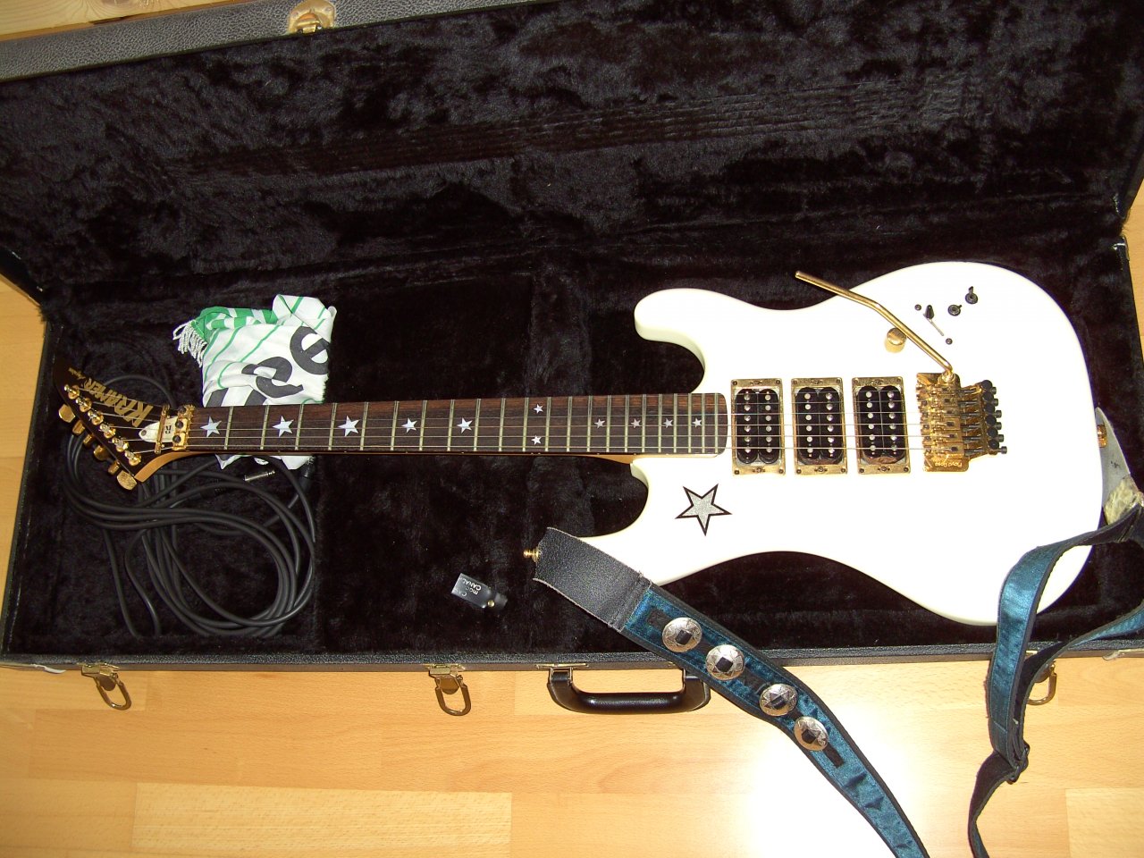 Wie ich letztens gelernt habe, sind das eigentlich auf ESP "umgelabelte" Kramer Stagemaster Gitarren.
