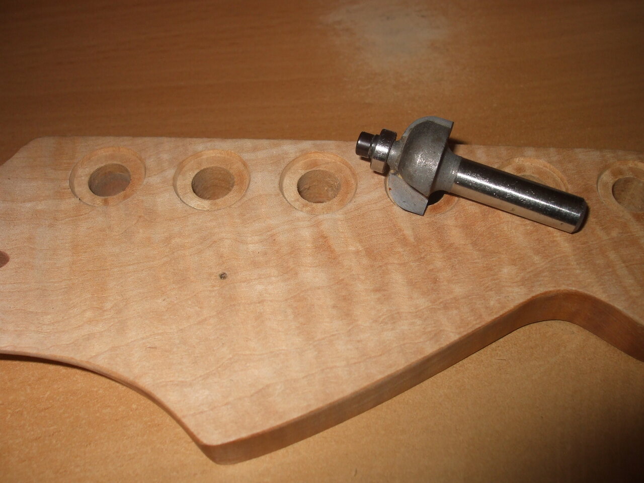 Das Problem hatte ich auch mit einigen Hälsen bei denen die Kopfplatte dicker war. Ich habe dort 2mm tief gefräst, also die "Schrauben" versenkt. Das geht gut mit einem Halbrundfräser der eine Anlaufrolle hat. Da kann nichts verlaufen.