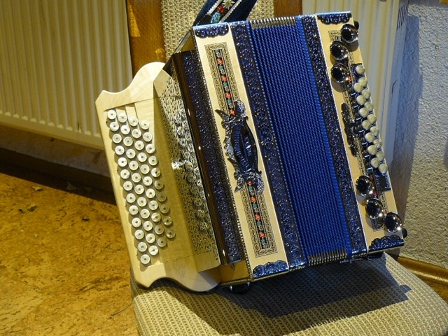 Servus beinander. Seit zwei Tagen ist die Landerer DeLuxe Olive GCFB (Michbauer-System) nun bei mir eingezogen. Auf den ersten Blick ein sehr schönes Instrument, soweit ich das beurteilen kann. Der Klang ist wesentlich weniger knarzig als der der Bayerland Profi 4NS. Ich empfinde den Klang schöner. Der Luftverbrauch ist wesentlich besser als bei der 4NS und die Knöpferl sprechen exakter an. Mit dem Luftknopf hab ich noch Probleme, da ich finde, dass dieser mehr Kraft und Technik benötigt.