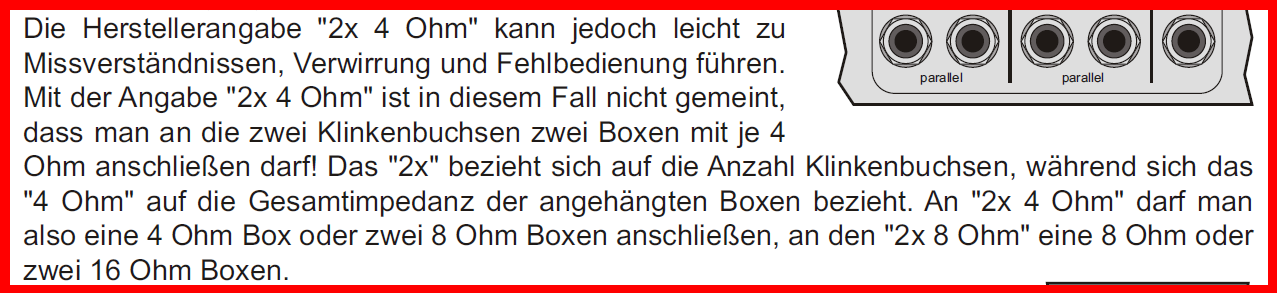 Auf dem Amp hingegen steht 2*8 Ohm und 1*4 Ohm?