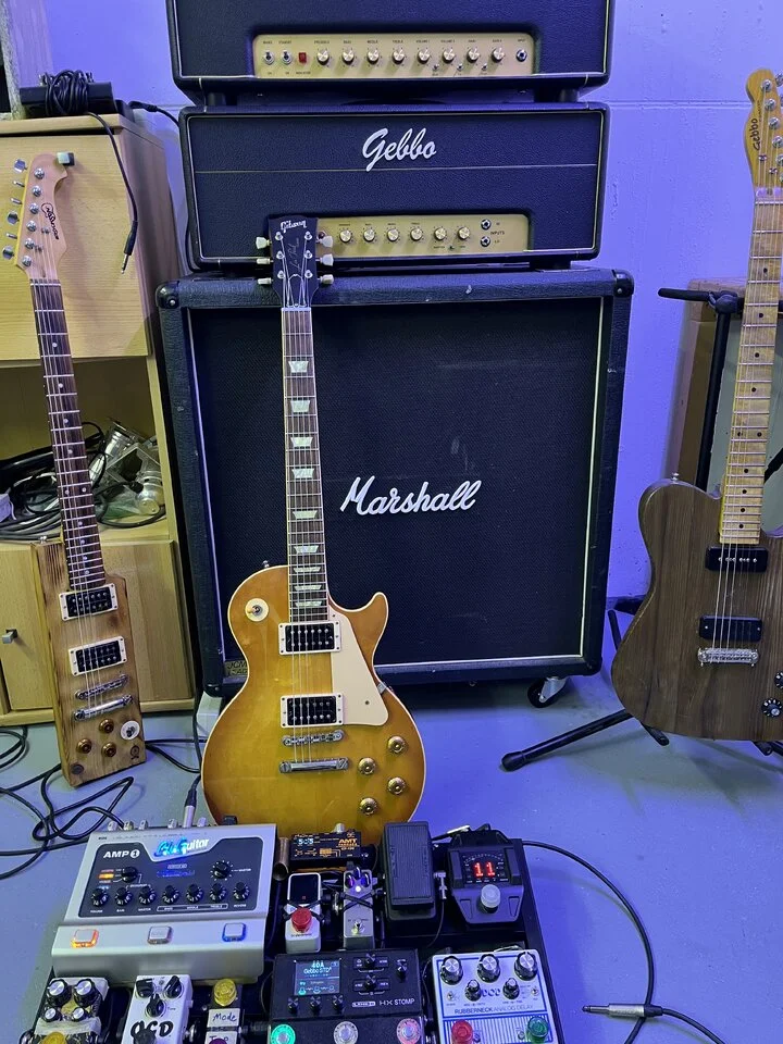 Im Anhang noch ein Bild von meinem Testsetup. Der Amp1 hat die Pickupunterschiede wirklich sehr gut wiedergegeben. Und schließlich ist das auch mein aktuelles Hauptboard für alle Situationen.
