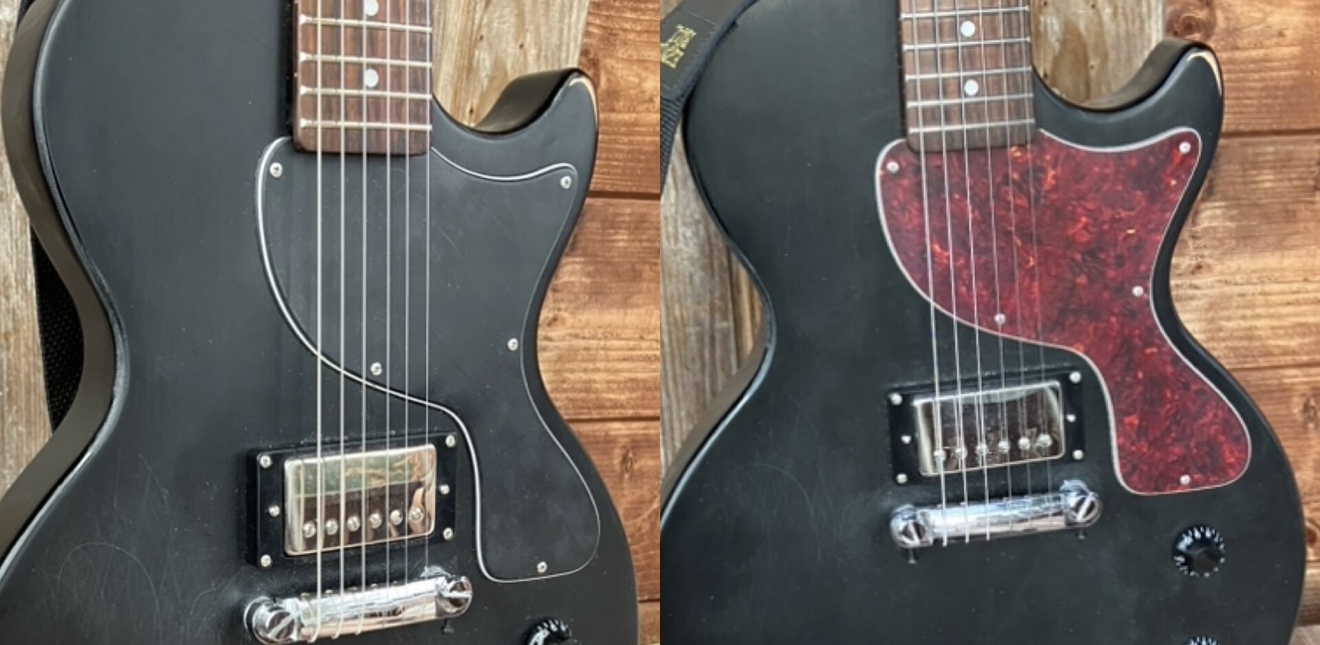 ich bin auf der Suche nach einem neuen Pickguard für meine Single Cut Gibson Les Paul Junior Bj. 2021. Hat hier jemand vielleicht eine Empfehlung? Habe bereits eins bei Amazon bestellt, bei dem die Löcher zur Befestigung nicht gepasst haben. Das originale Pickguard ist ein 3ply Tortoise Pickguard, welches mir ein bisschen zu sehr ins rot geht. Ich suche nach etwas im bräunlichen Ton.