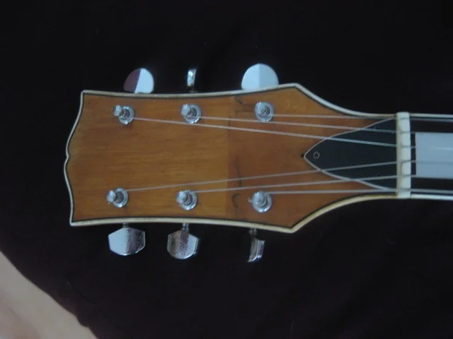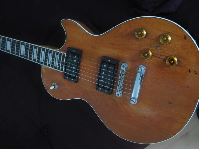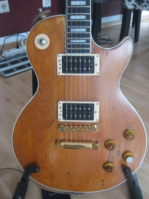 Er weiß das nicht? Mh, ich hoffe du hast nicht zuviel für die Gitarre bezahlt. Für eine komplett verbastelte LP mit unbekannter Herkunft, würde ich auf keinen Fall mehr als 150 Euro bezahlen.Vielleicht kommen ja noch ein paar Infos von Euch.