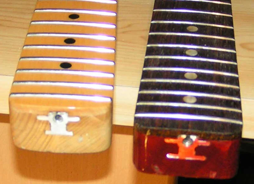 Allein das Halsprofil bei den beiden Gitarren ist ein Unterschied wie Tag und Nacht. Ne 50s hat einen eher dicken Baseballknüppel artigen Neck (rundes D ennt man das, glaube ich) und die Super Swede hat dagegen einen Hals, der sogar dünner als der 60s Strat Neck ist. Auch der Radius unterscheidet sich - die Gibson ist da eher klassisch ausgerichtet, wogegen die Super Swede einen flacheren Radius hat.